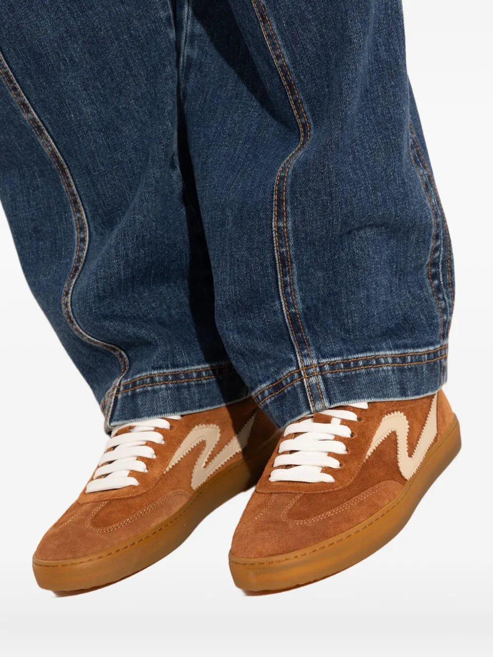 Верх из коричневой замши, волнообразная деталь спереди, шнуровка, резиновая подошва