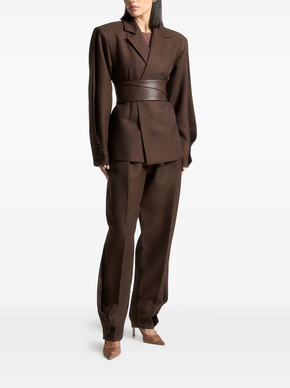 Коричневые рукава-закрутки с поясом, манжетами на пуговицах