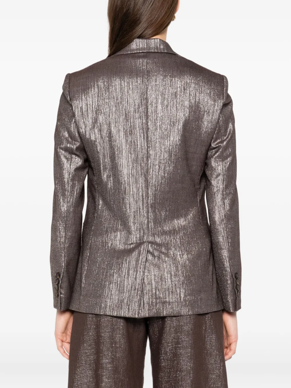 Однобортный блейзер с эффектом металлик Brunello Cucinelli, коричневый