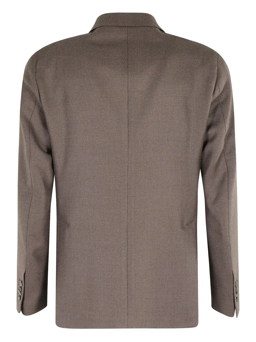 Коричневый двубортный пиджак с застежкой, накладными карманами и острыми лацканами