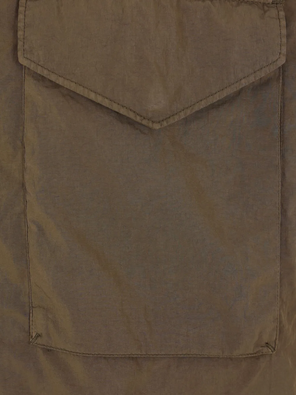 Оливково-коричневого цвета, нагрудный карман с клапаном, застежка-молния, манжеты на пуговицах, деталь с линзами, прямой подол