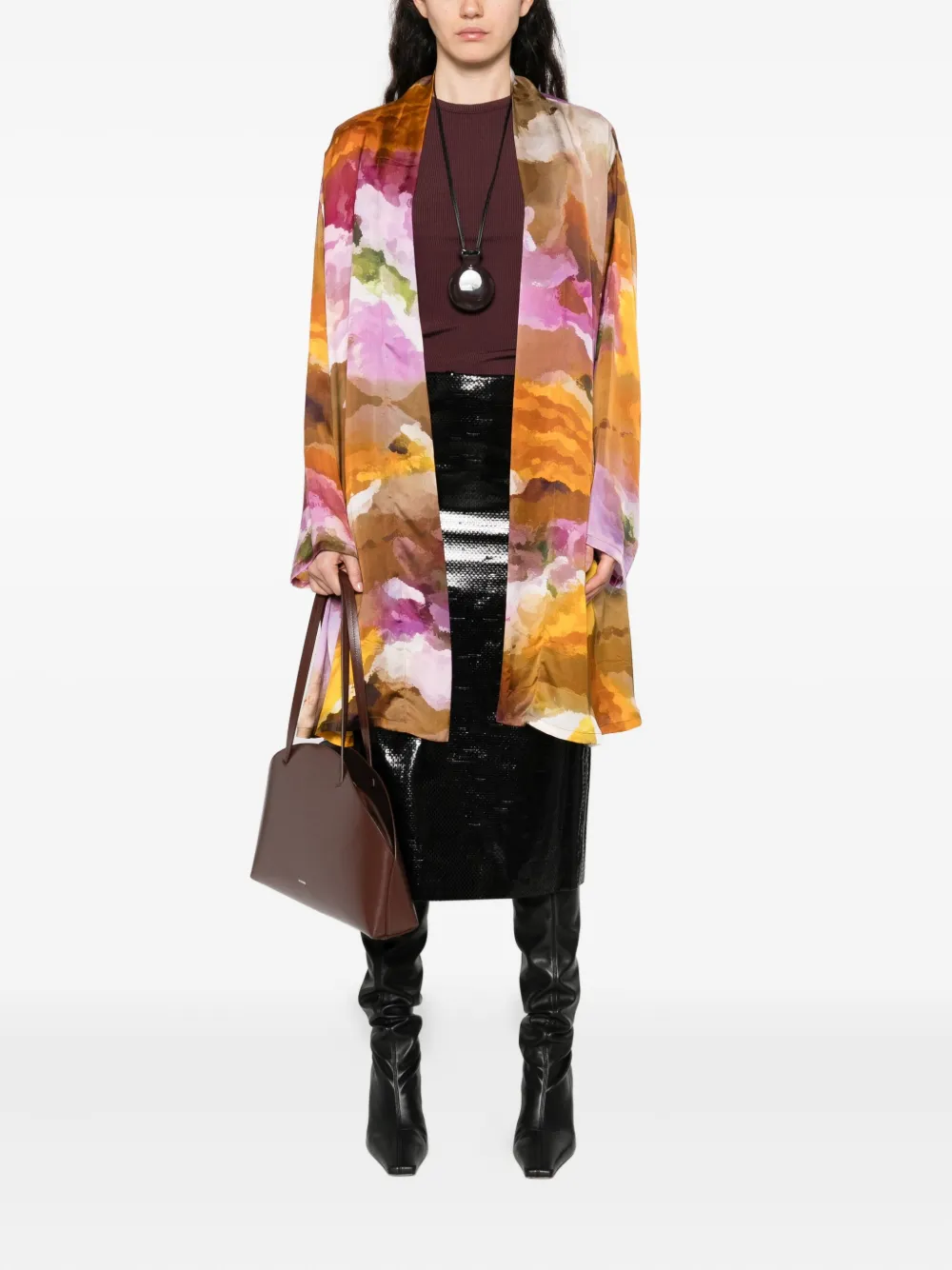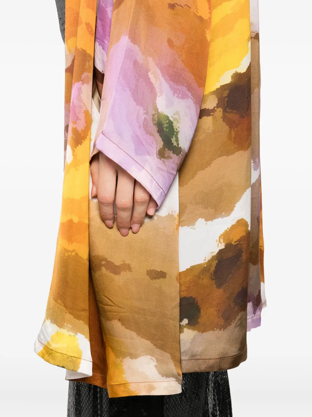 Коричневый, розовый и фиолетовый абстрактный цветочный принт с открытым передом
