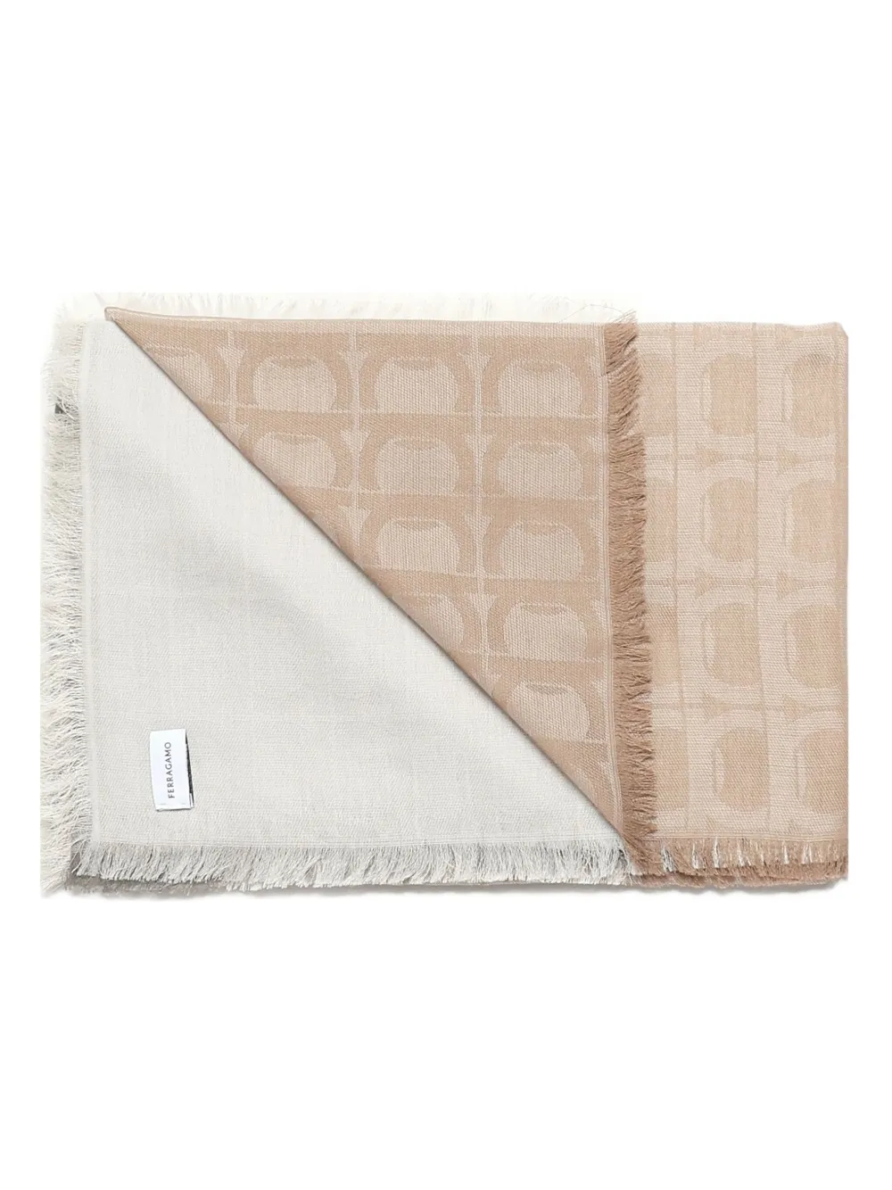 Шарф с бахромой и узором Ferragamo, коричневый