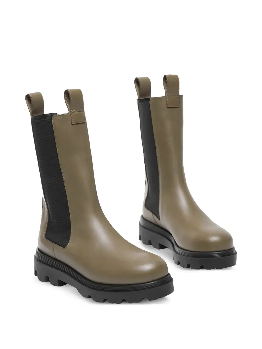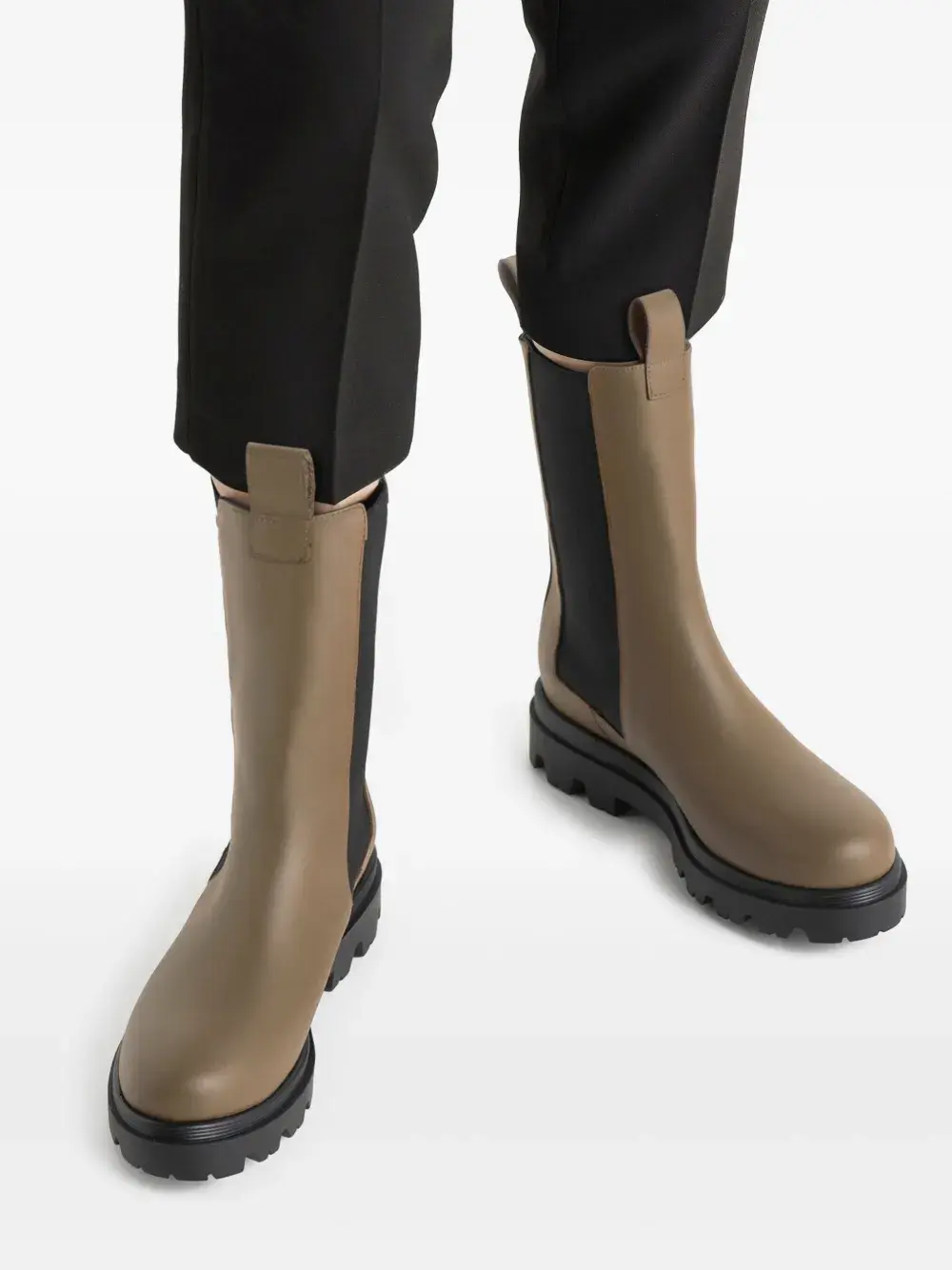 Коричневые кожаные эластичные боковые вставки, круглый носок, язычки, массивная резиновая подошва