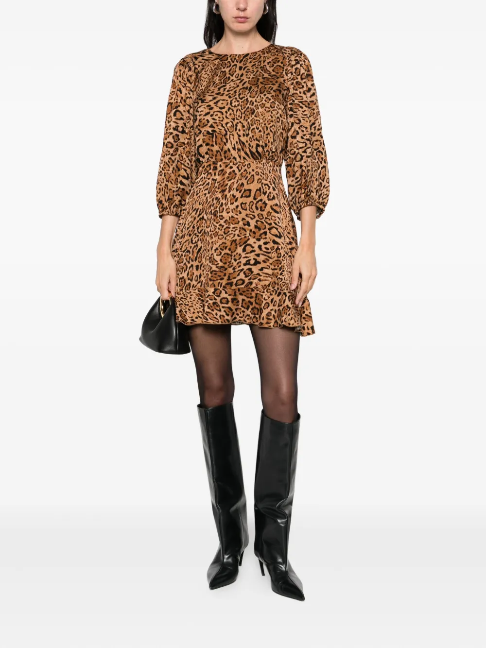 Платье мини с объемными рукавами и леопардовым принтом TWINSET, коричневый