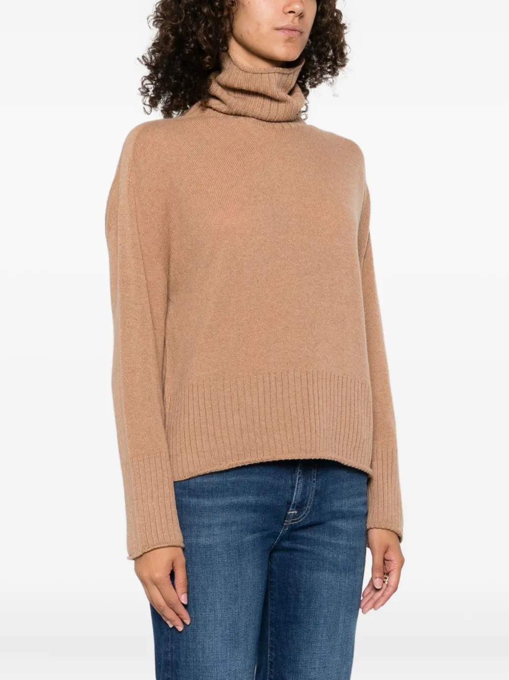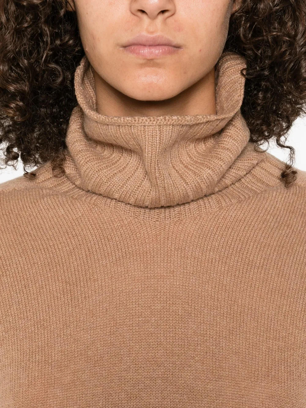 Джемпер в рубчик с высоким воротником Aragona, коричневый