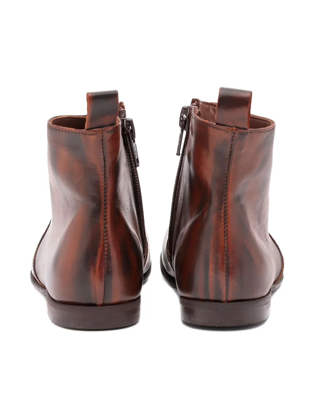Коричневая телячья кожа, застежка-молния, плоская подошва, язычок для вытягивания