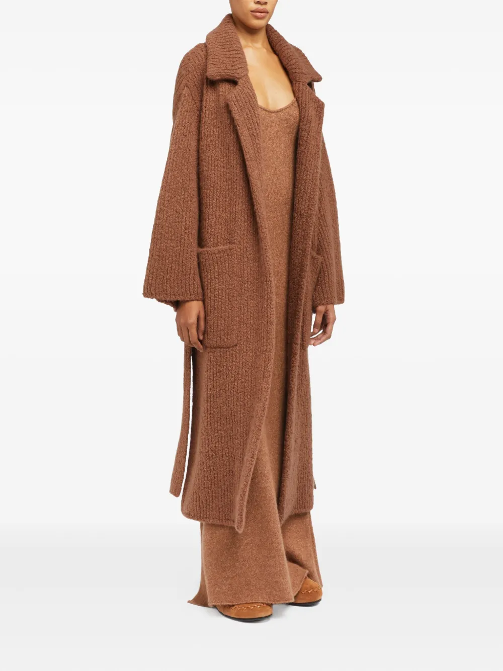 Пальто в рубчик с поясом Alanui, коричневый