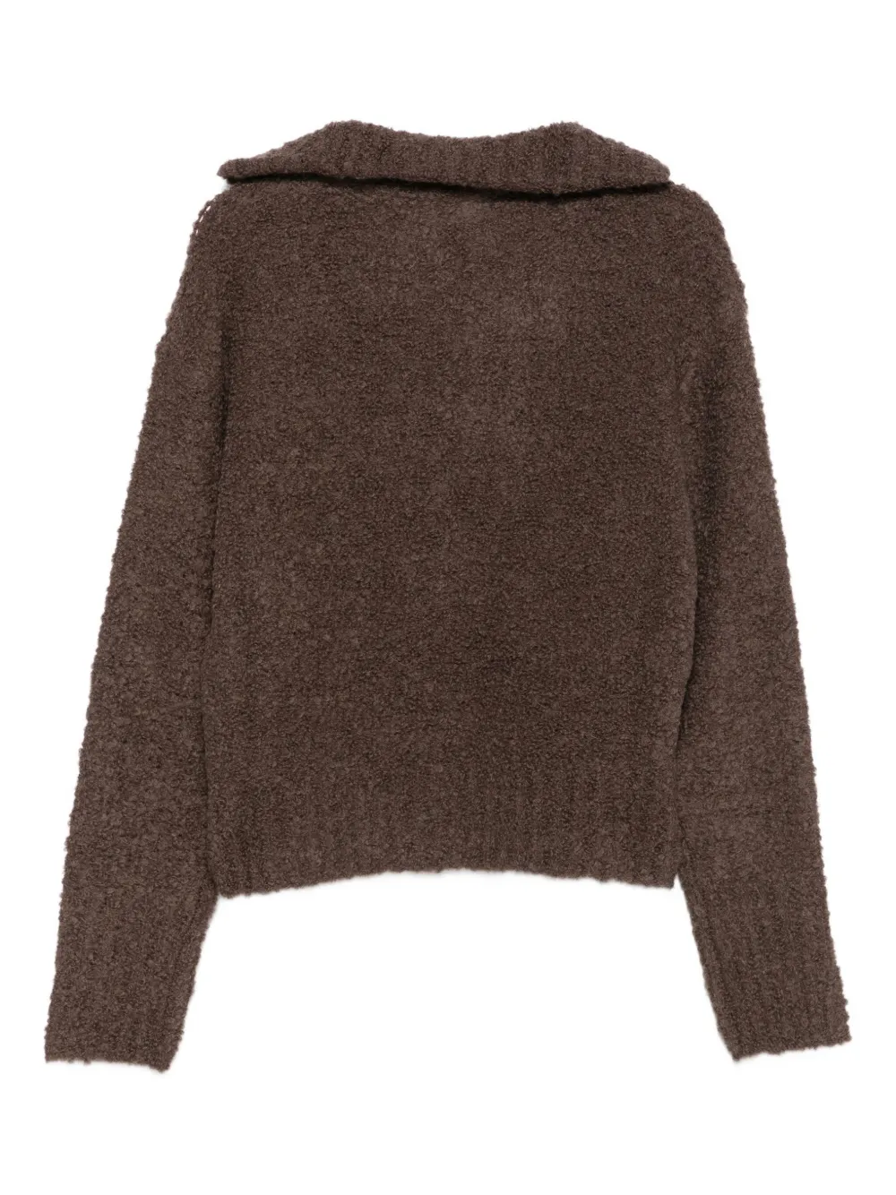 Коричневый V-образный вырез, длинные рукава, ребристый подол
