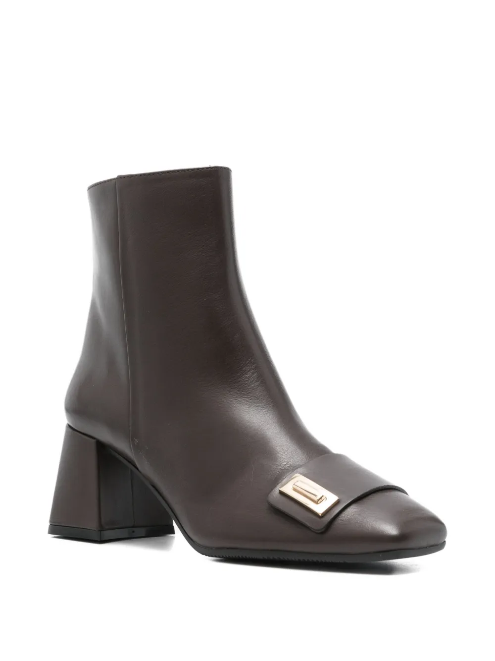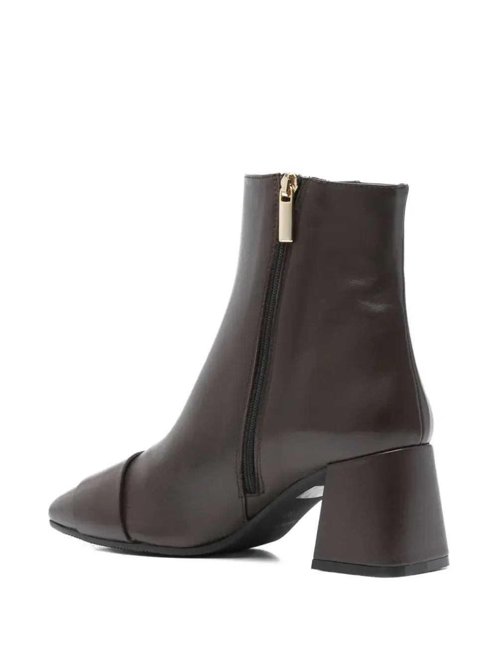 Коричневый кожаный кроссовок с квадратным носком, квадратным каблуком, застежкой-молнией и золотистой фурнитурой