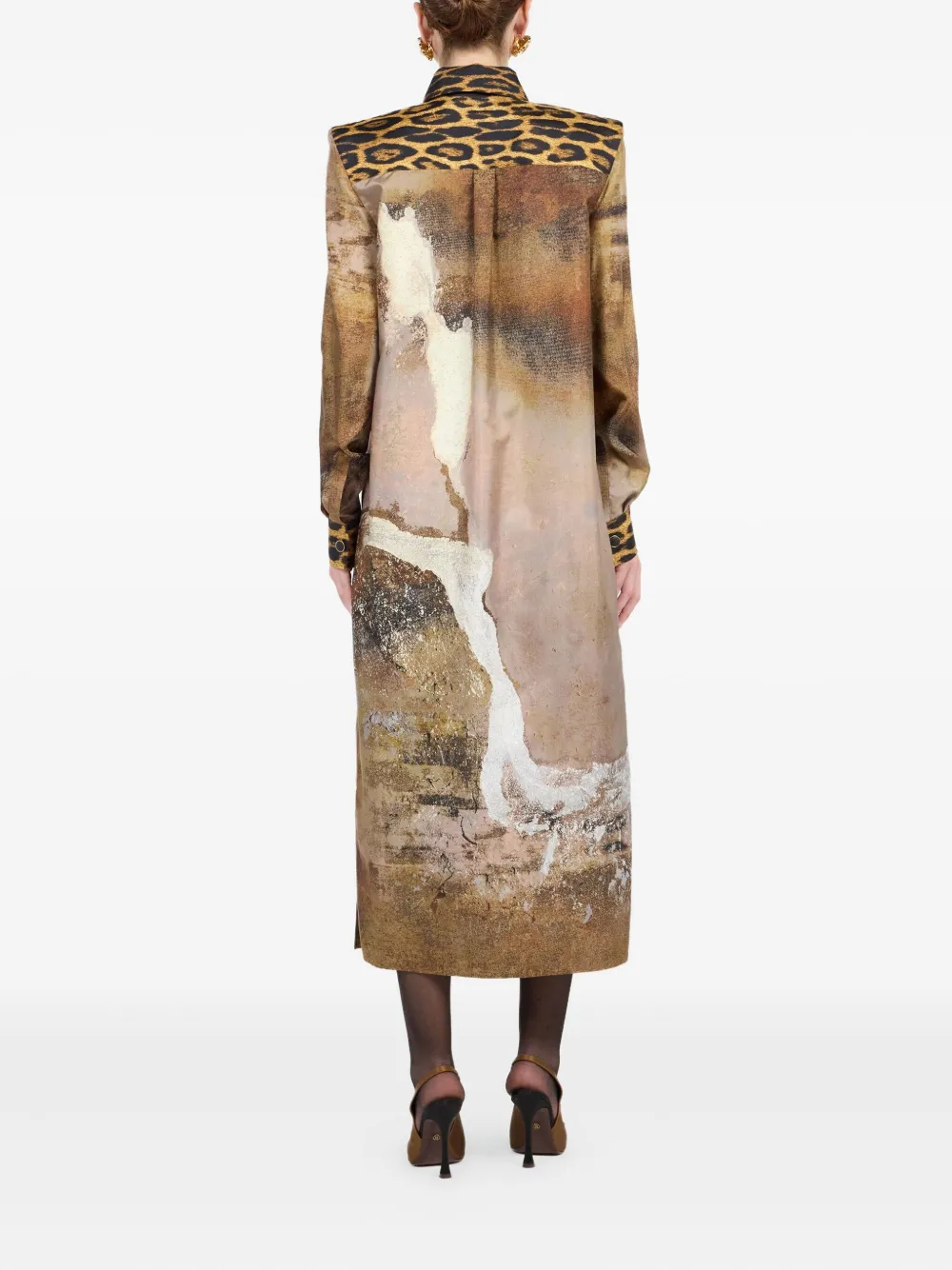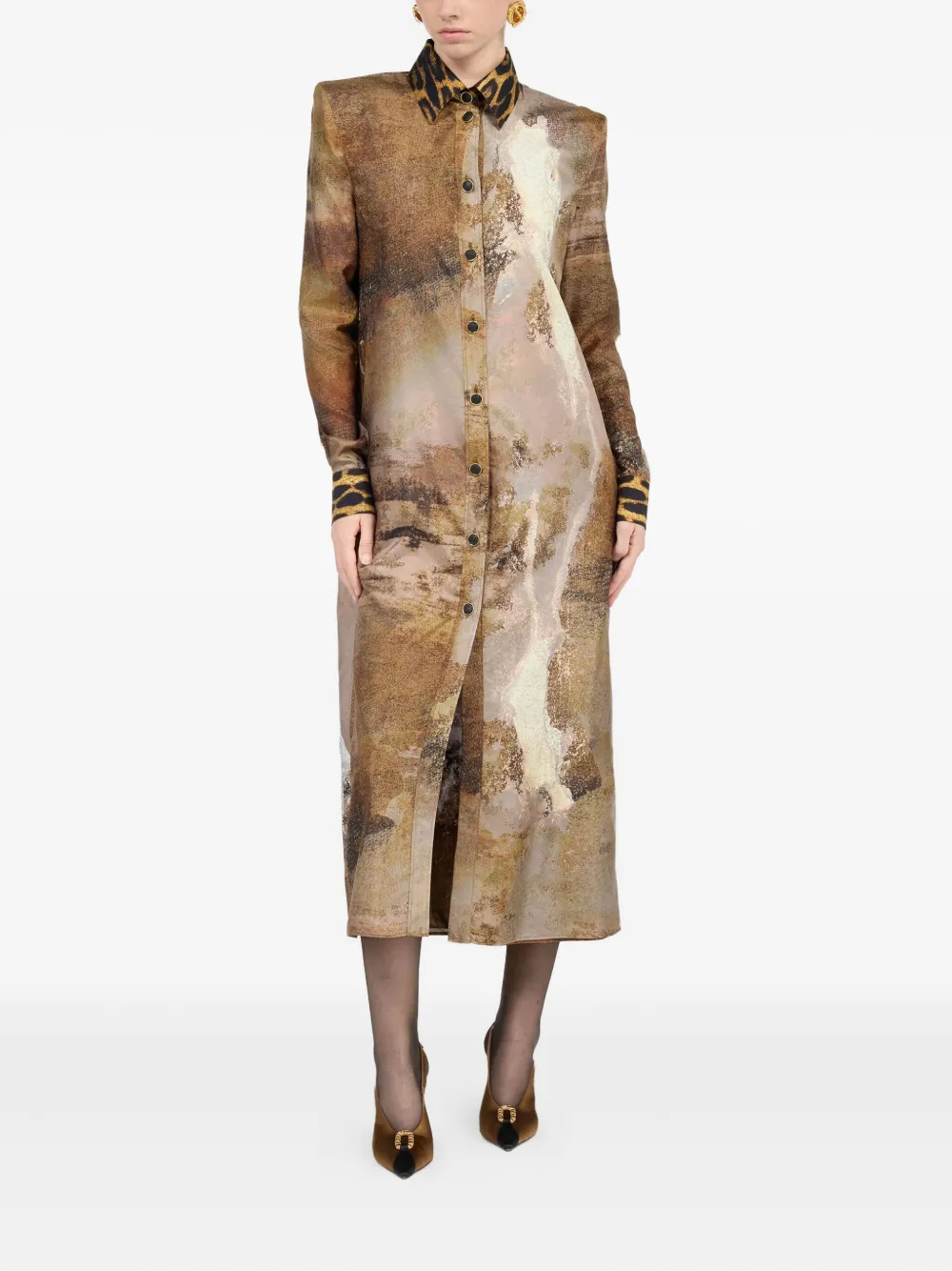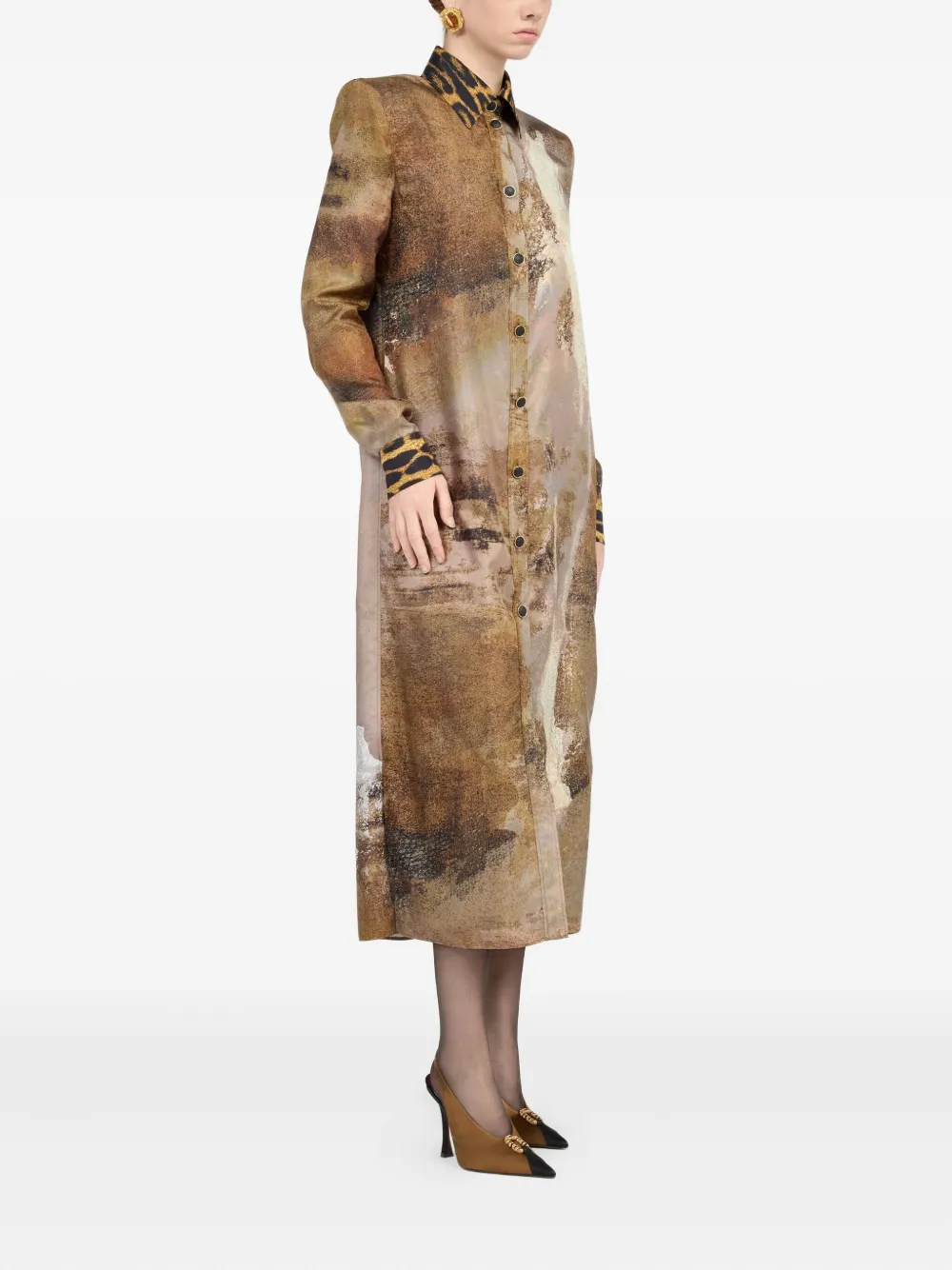 Платье-рубашка с мраморным принтом Roberto Cavalli, коричневый
