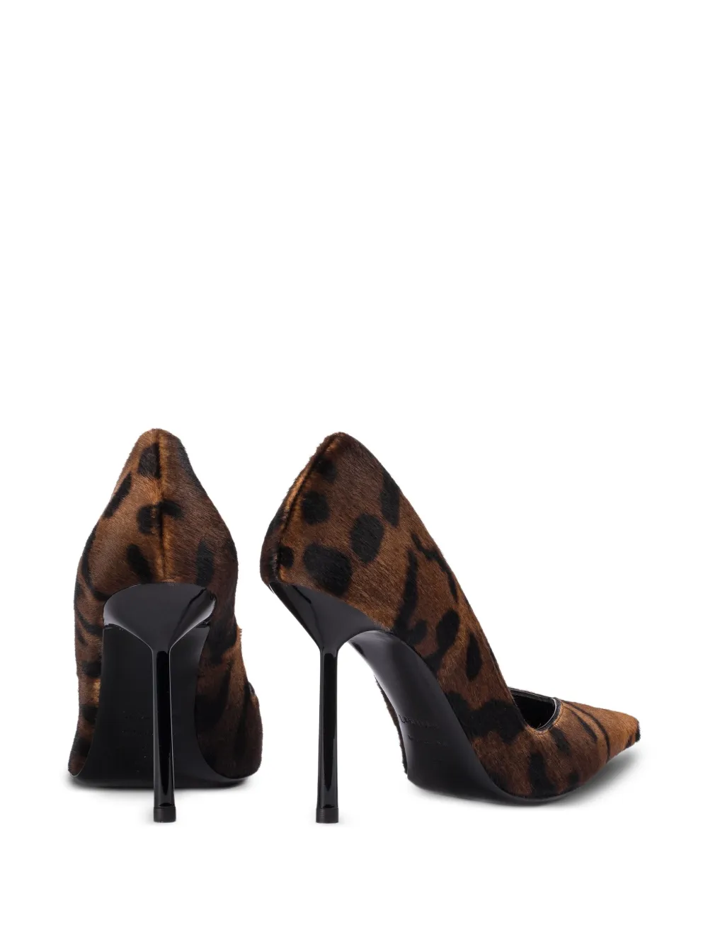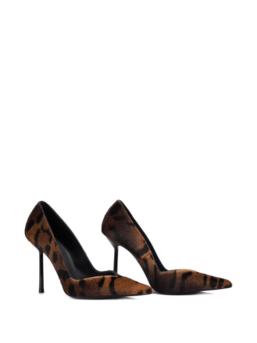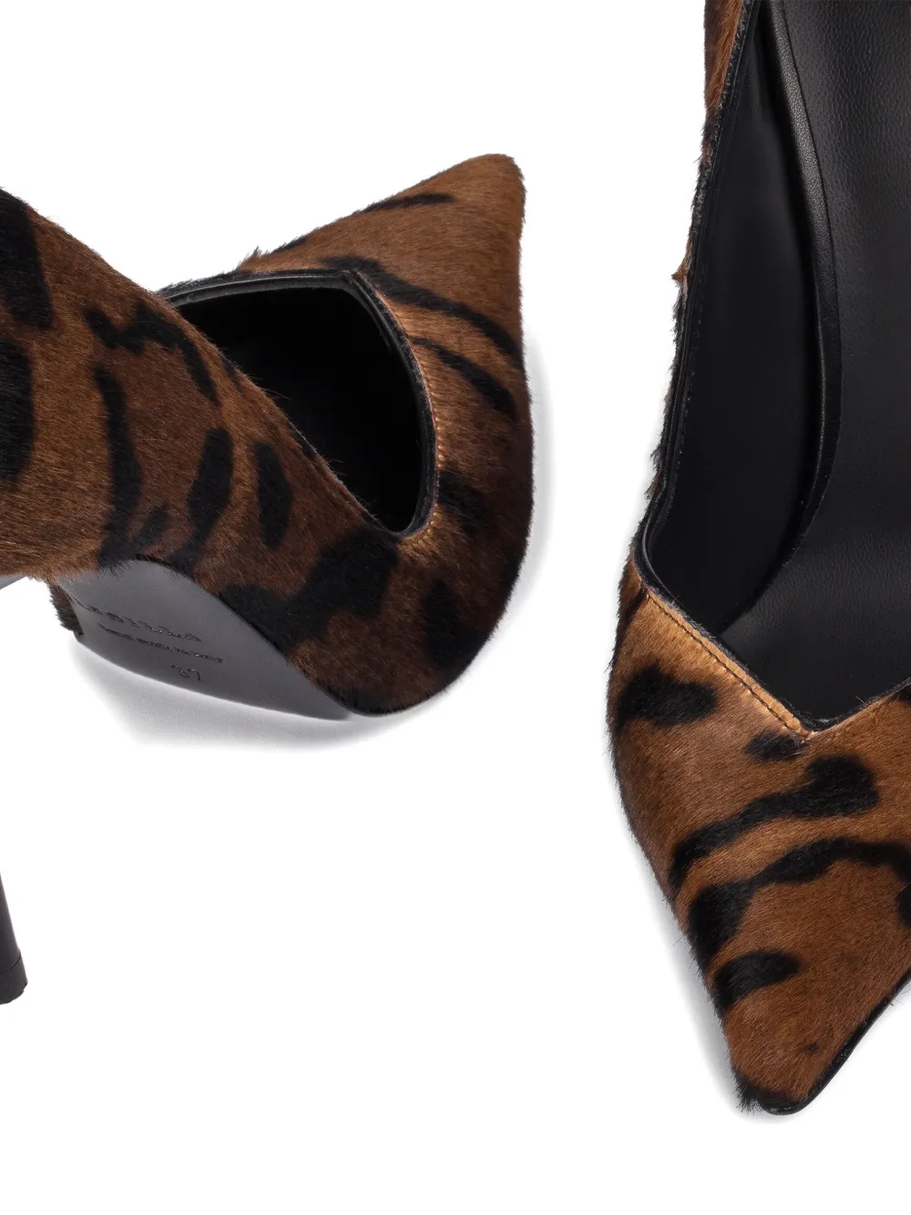 Коричневые кожаные туфли с леопардовым принтом, острый носок, каблук-шпилька 100 мм