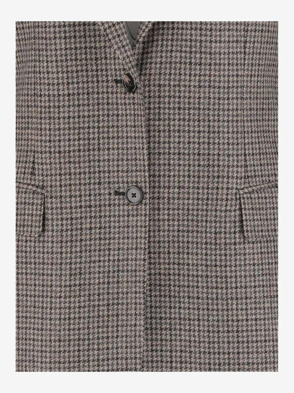 Коричневая шерсть с узором «гусиная лапка», однобортная застежка, длинные рукава, манжеты на пуговицах