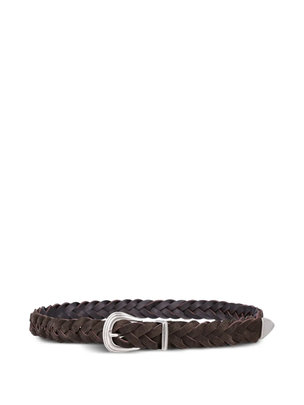 Коричневая плетеная кожаная пряжка серебристого тона с одним зубцом