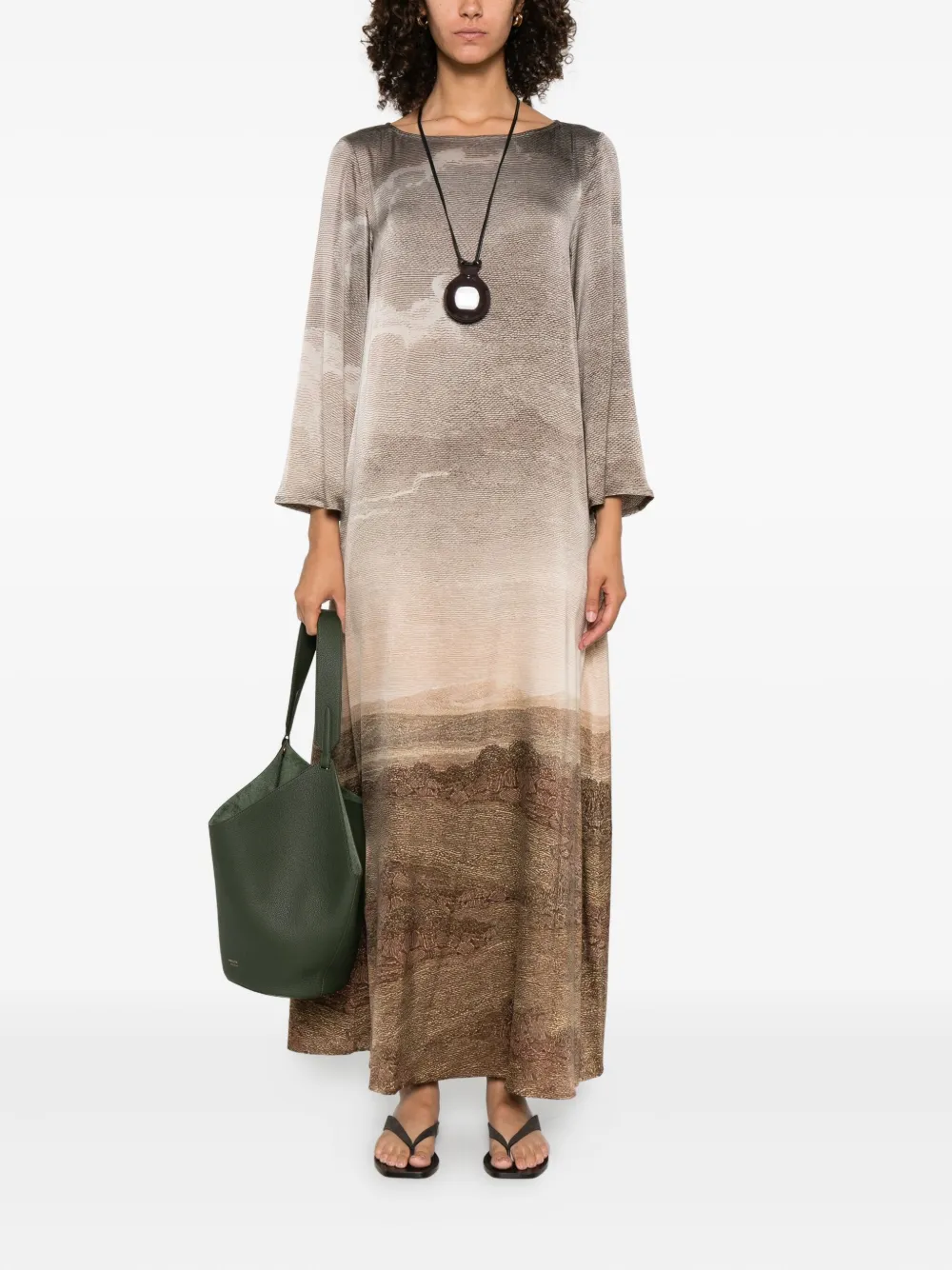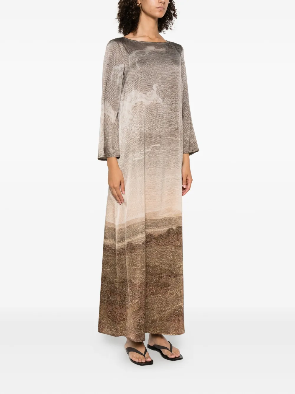 Шелковое платье с принтом Pierre-Louis Mascia, коричневый