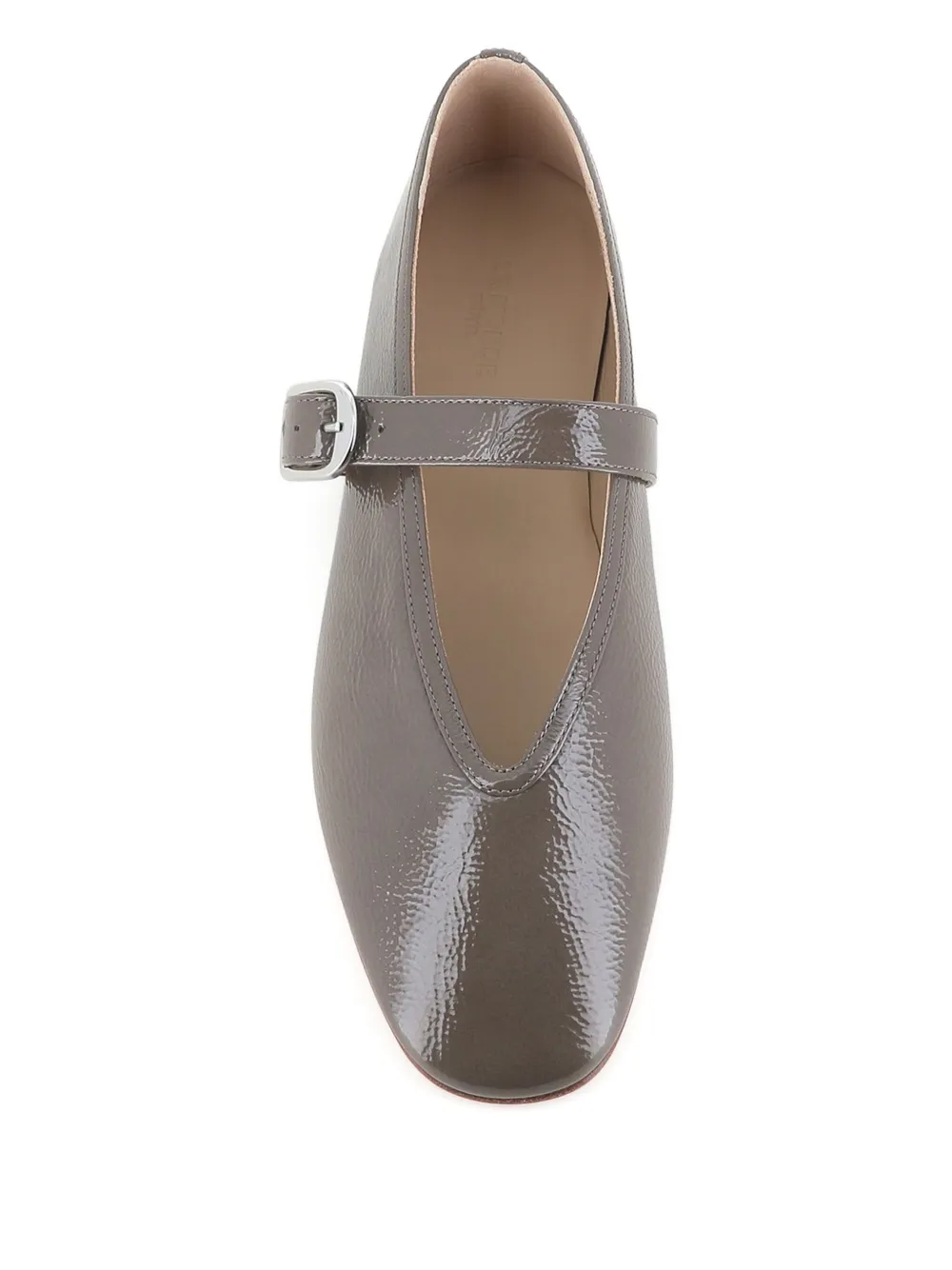 Застежка на пряжку из коричневой лакированной кожи, круглый носок, V-образный союз, плоская подошва