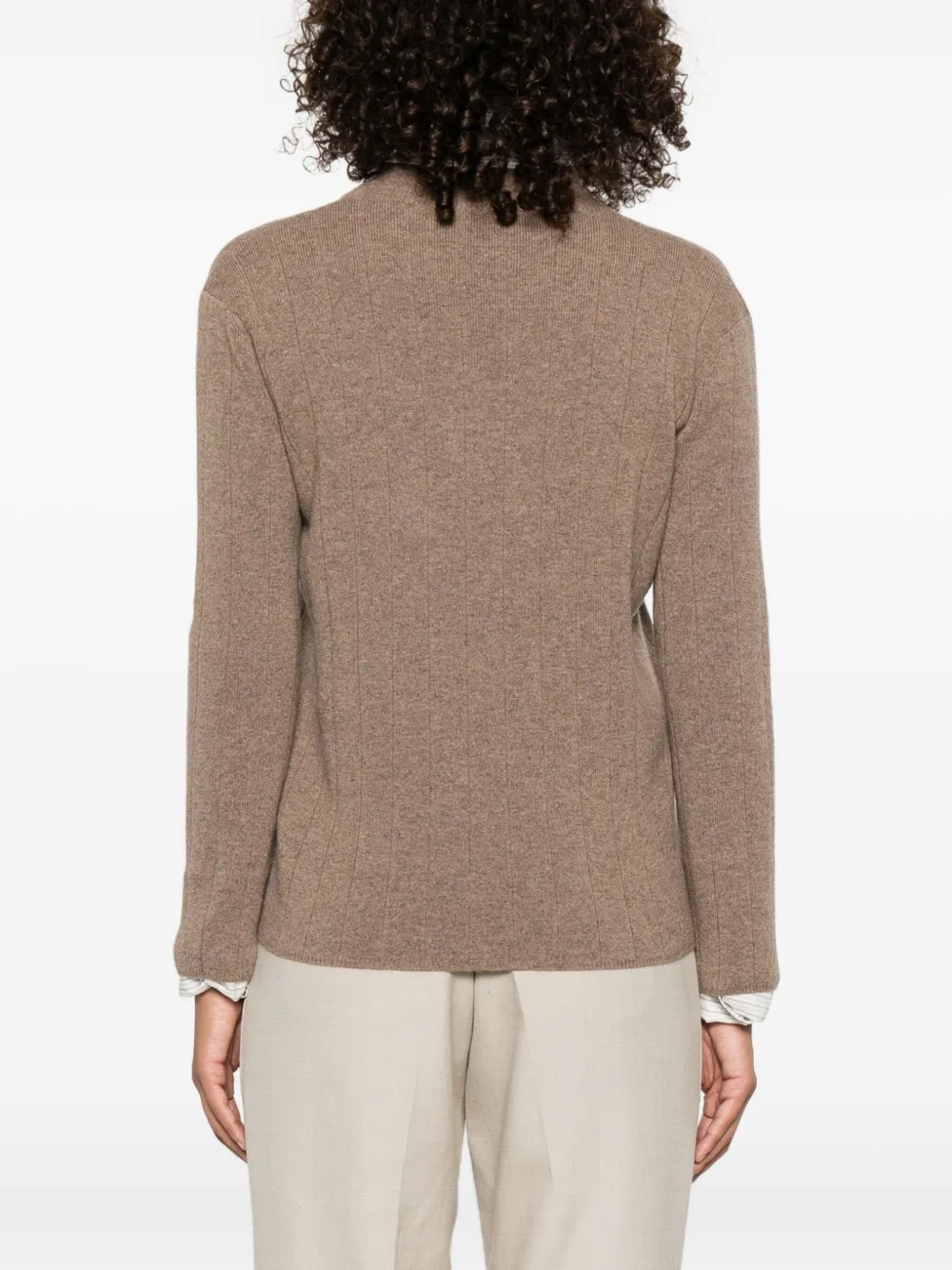Джемпер в рубчик с V-образным вырезом MAX MARA, коричневый