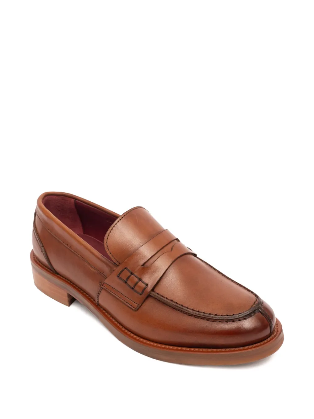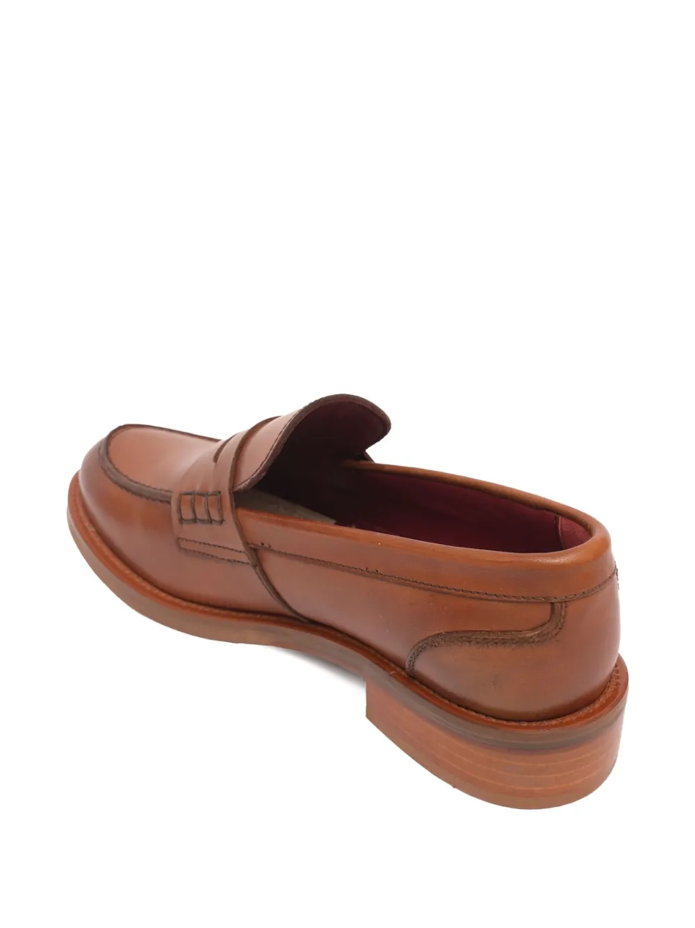 Коричневый телячий ремешок из пенни с прошитыми деталями, плоская подошва