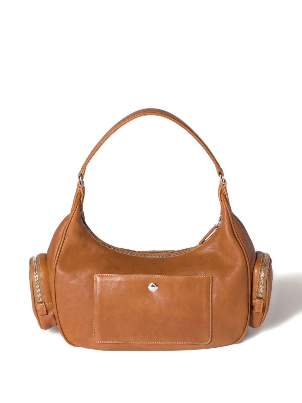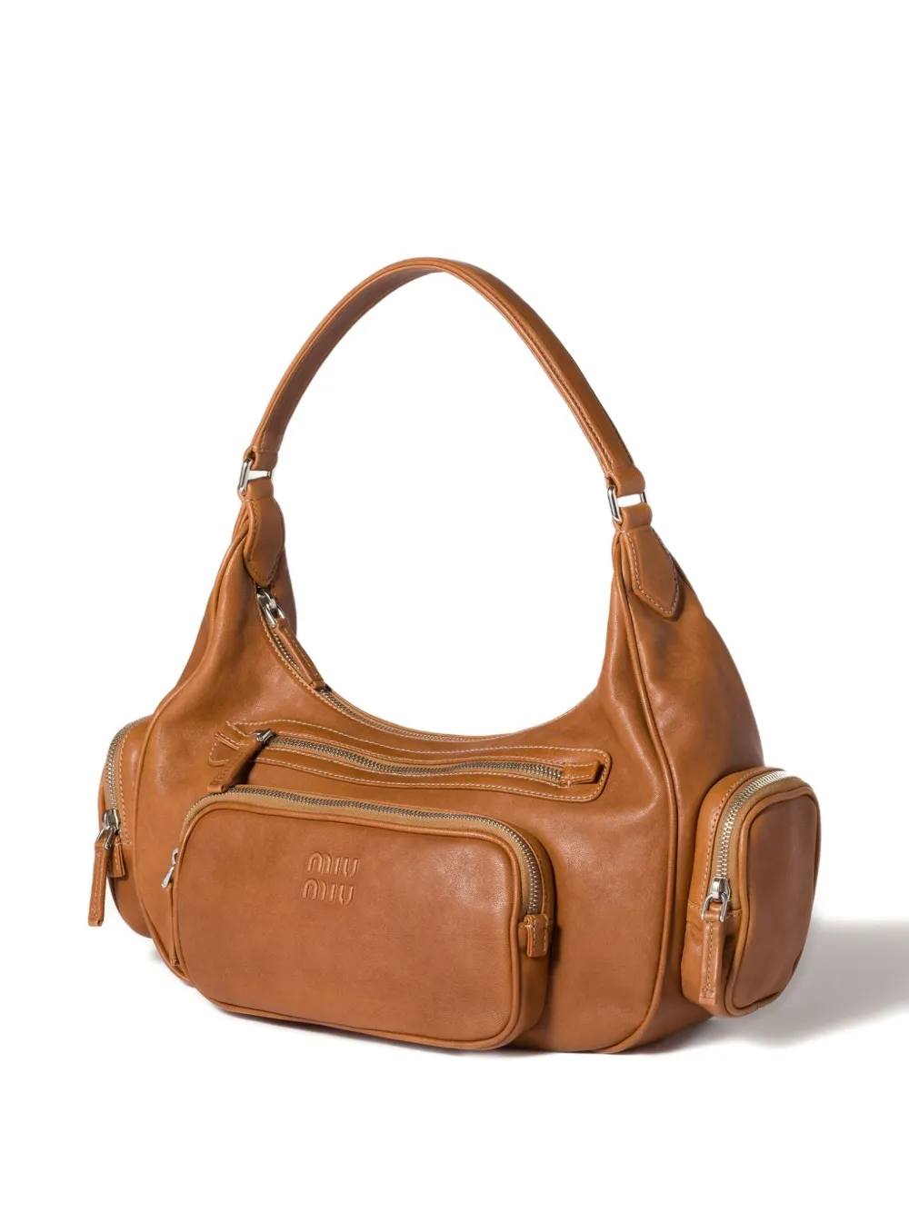 Коричневые кожаные внешние карманы на молнии с тисненым логотипом застежка-молния