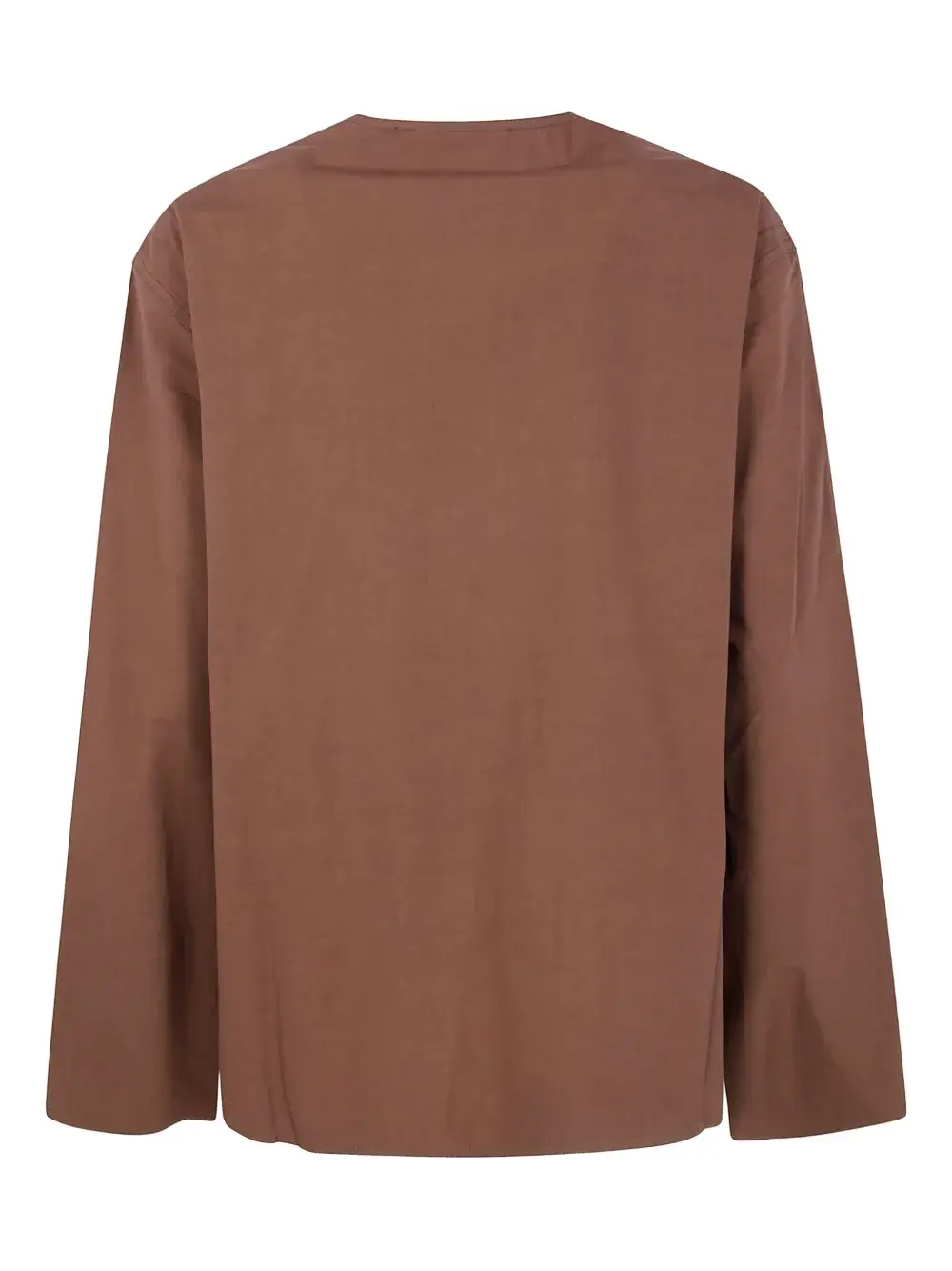 Коричневый карман с клапаном, длинные рукава, деталь шва
