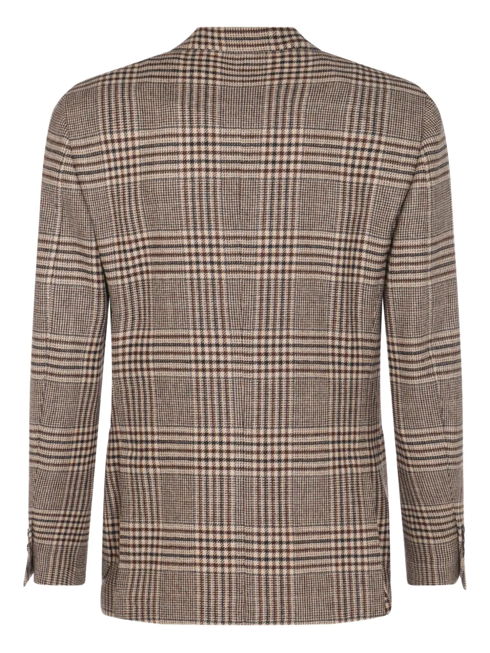 Клетчатый блейзер с цветочной брошью Lardini, коричневый