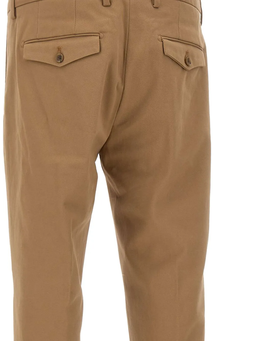 Коричневые плиссированные передние карманы на пуговицах, прорезные боковые карманы с клапанами на пуговицах, задние карманы с манжетами