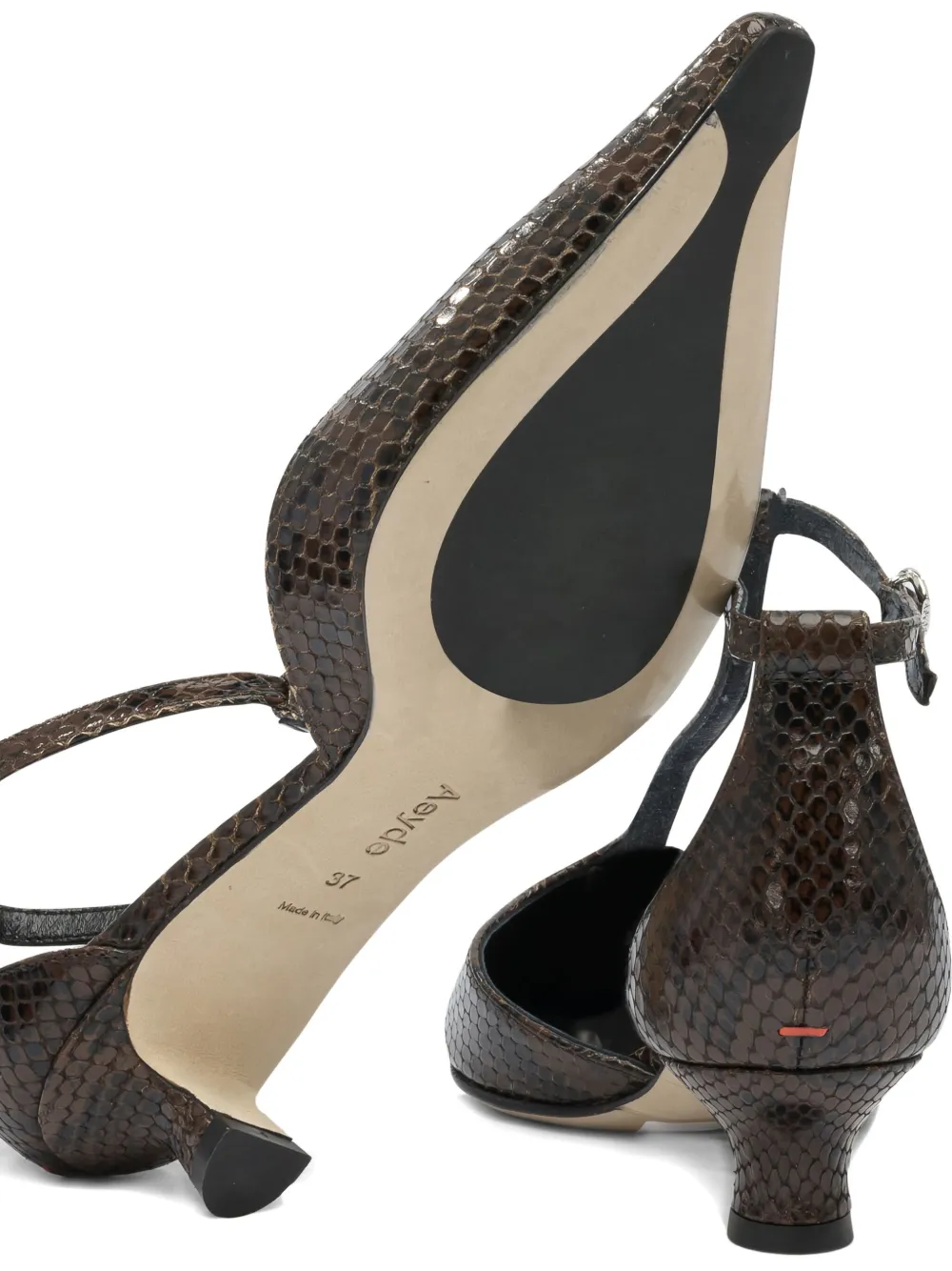 Коричневый змеиный принт с Т-образным ремешком и острым носком