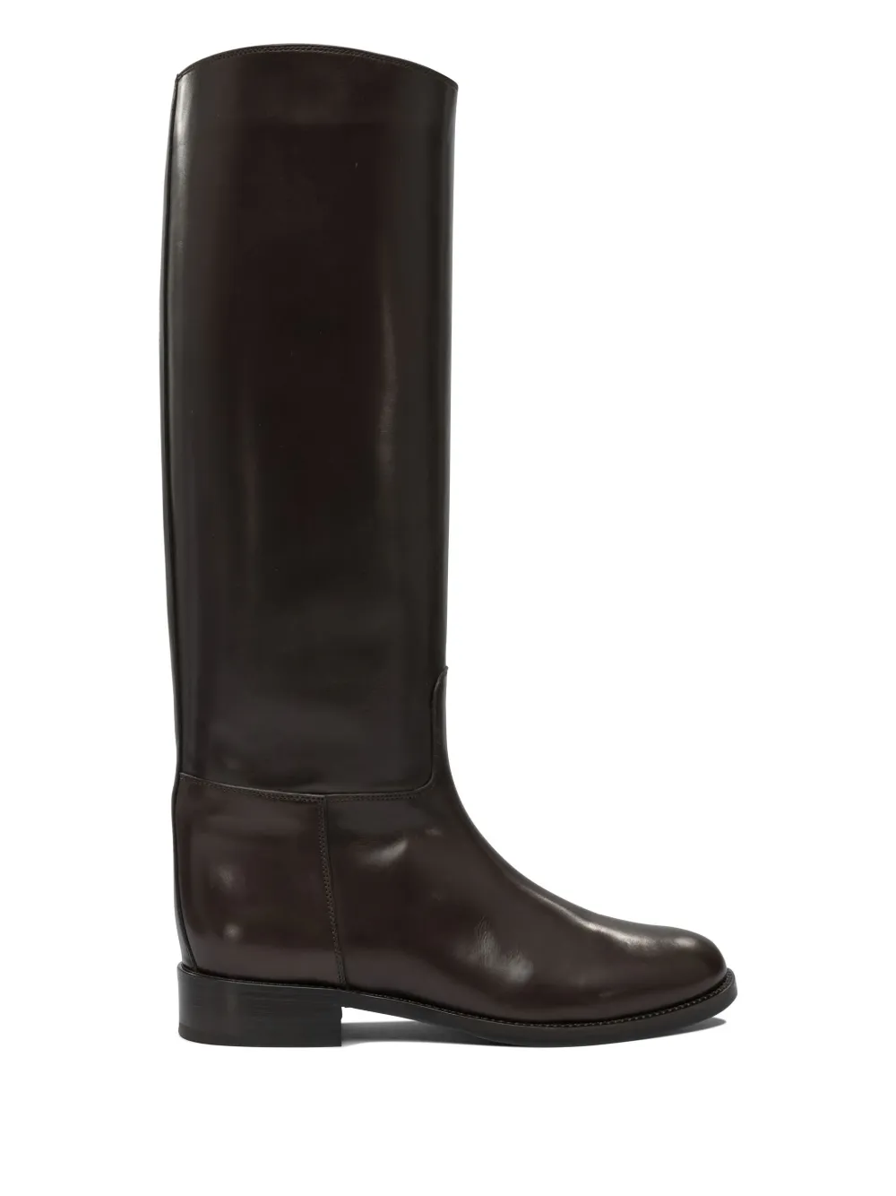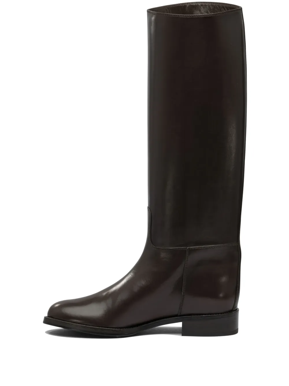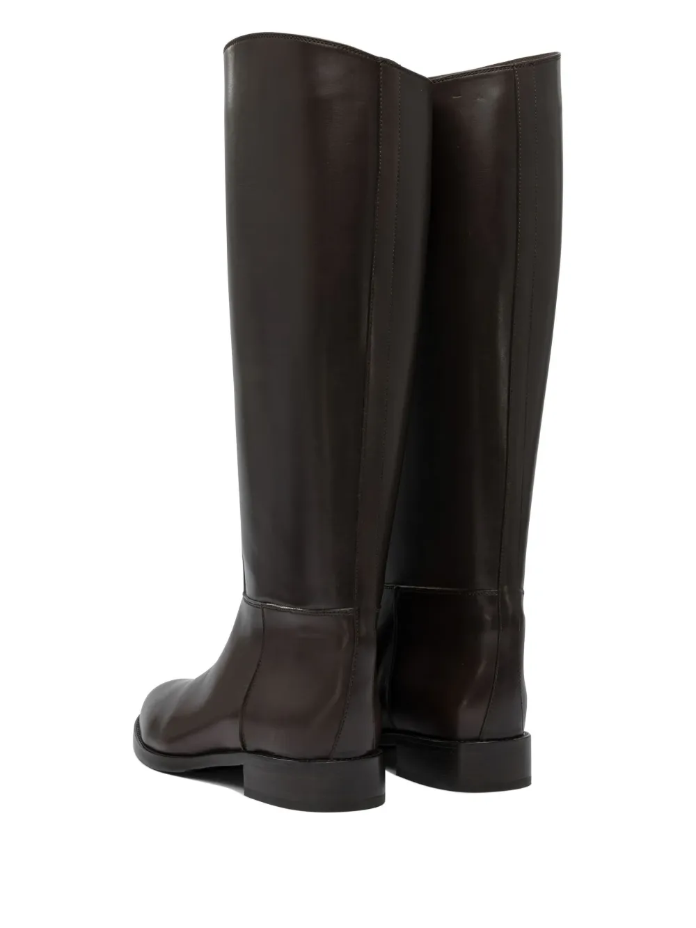 Коричневые кожаные туфли с плоским каблуком и круглым носком, голенище до колена