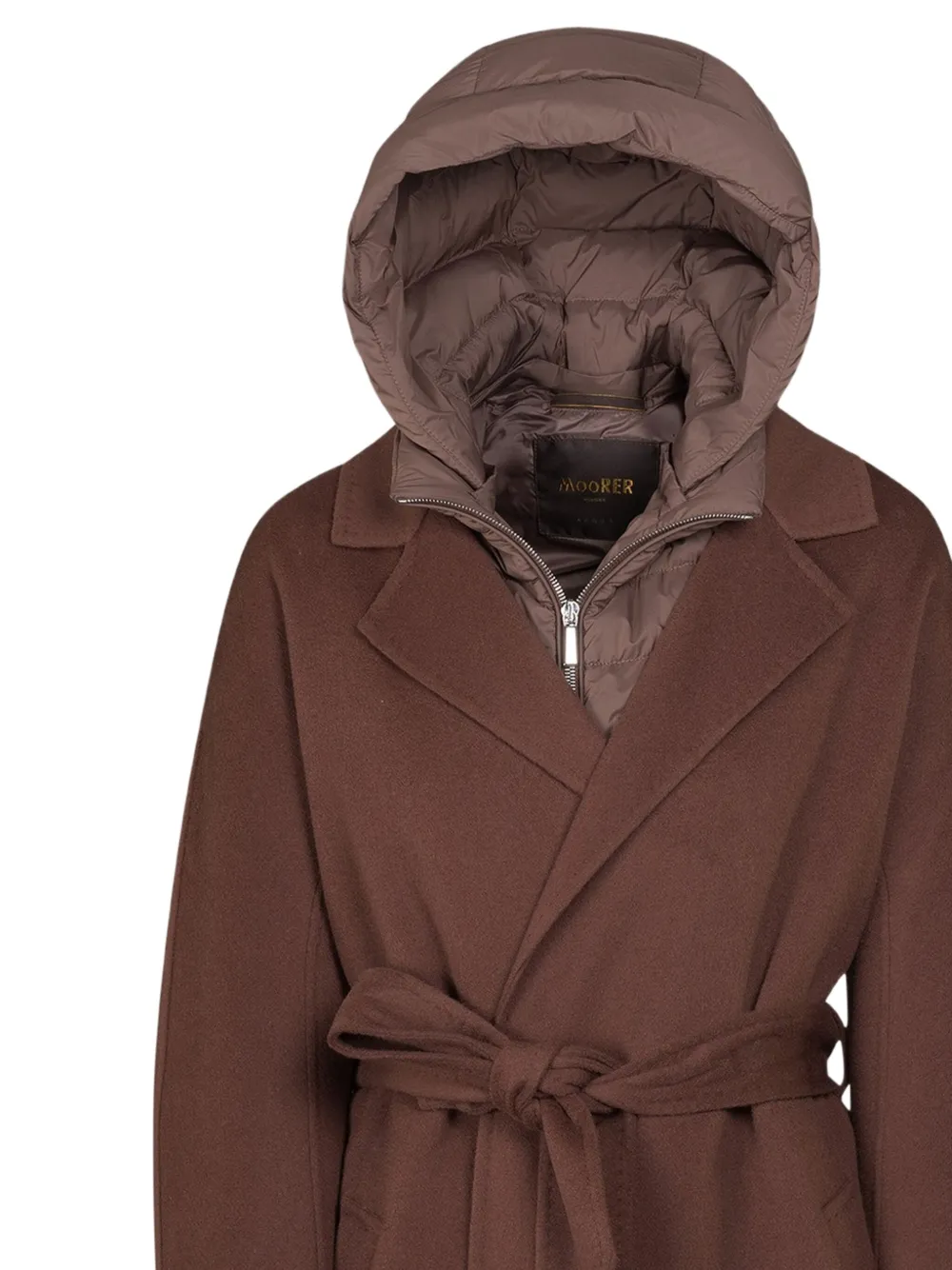 Пальто с капюшоном и поясом Moorer, коричневый