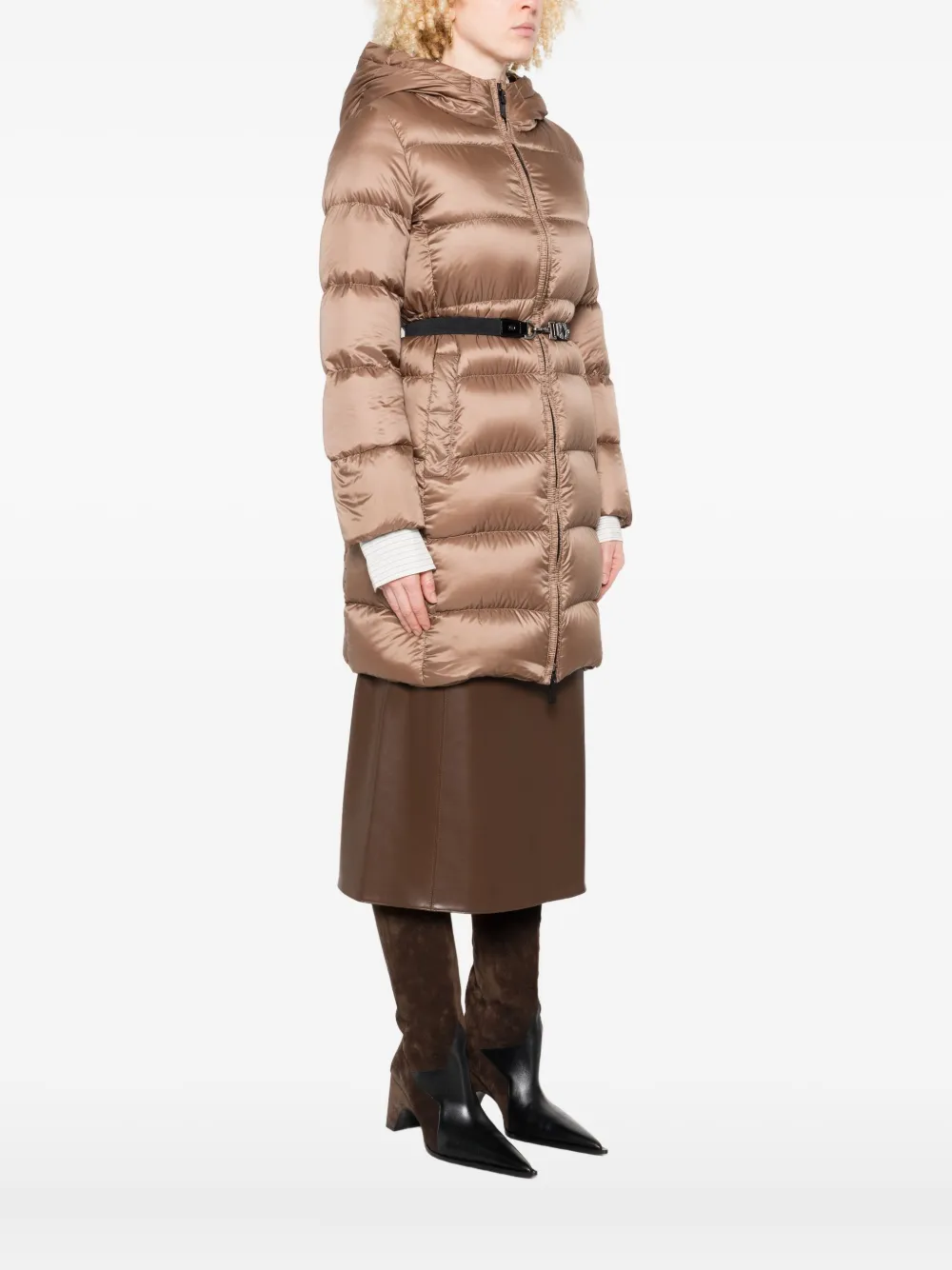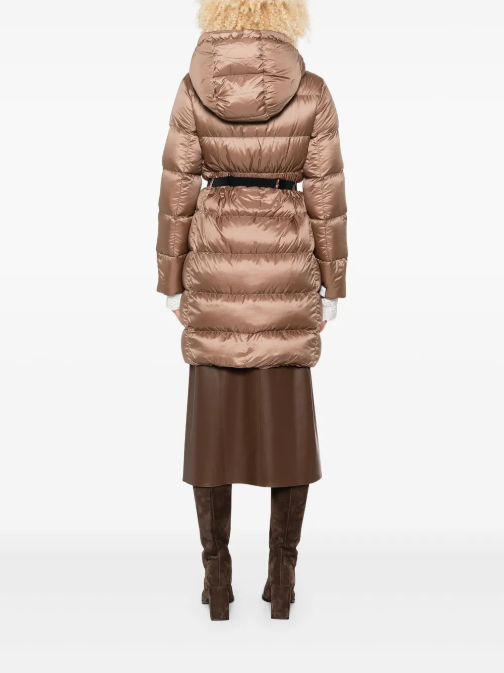 Куртка-пуховик с капюшоном и поясом MAX MARA, коричневый