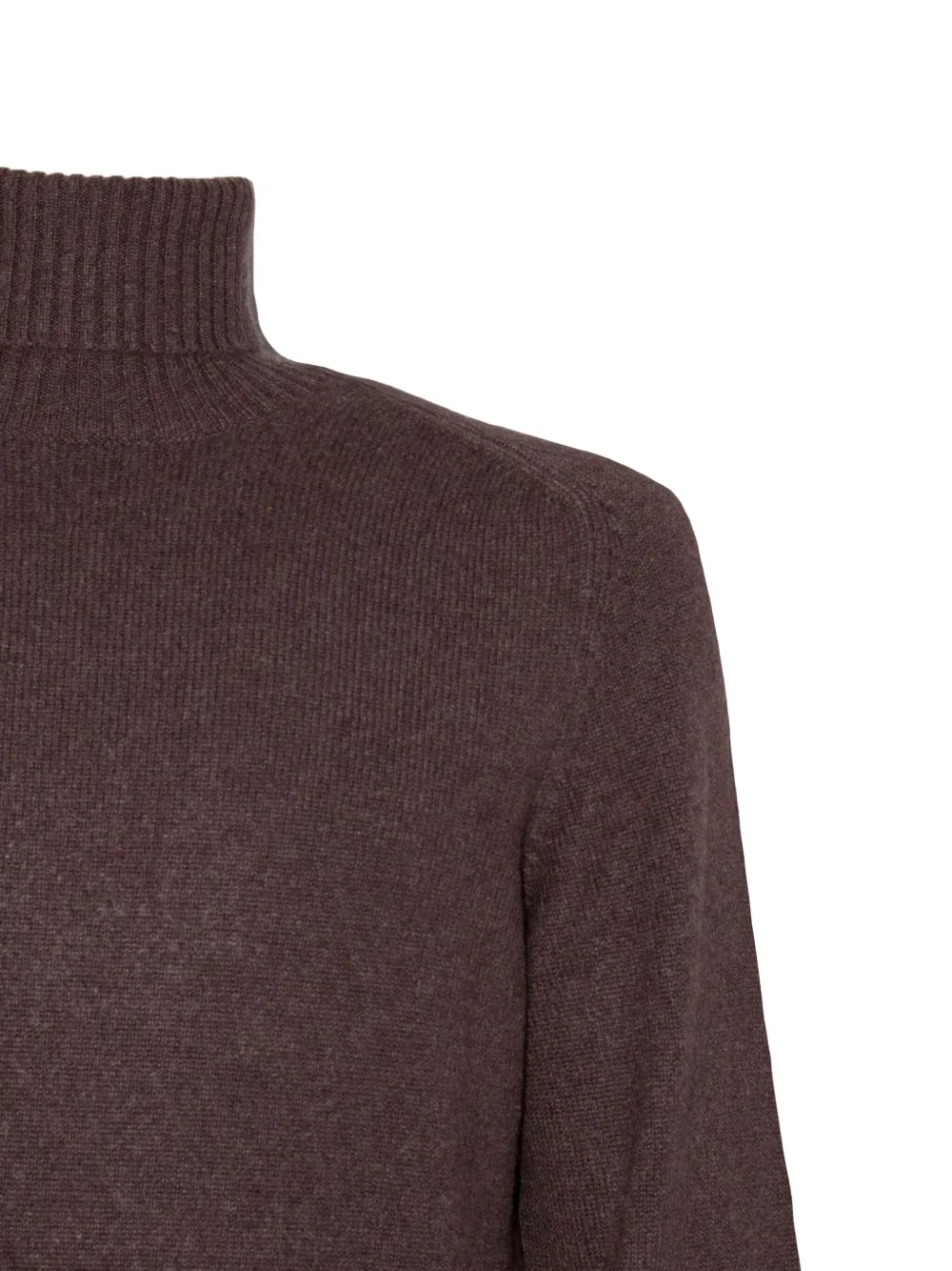 Коричневая кашемировая водолазка с длинными рукавами и ребристыми отделками