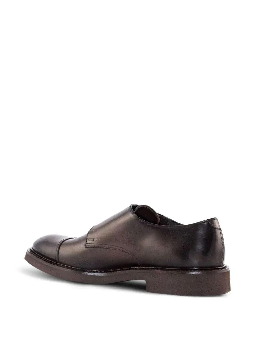 Верх из темно-коричневой кожи, застежка на двойную пряжку, резиновая подошва
