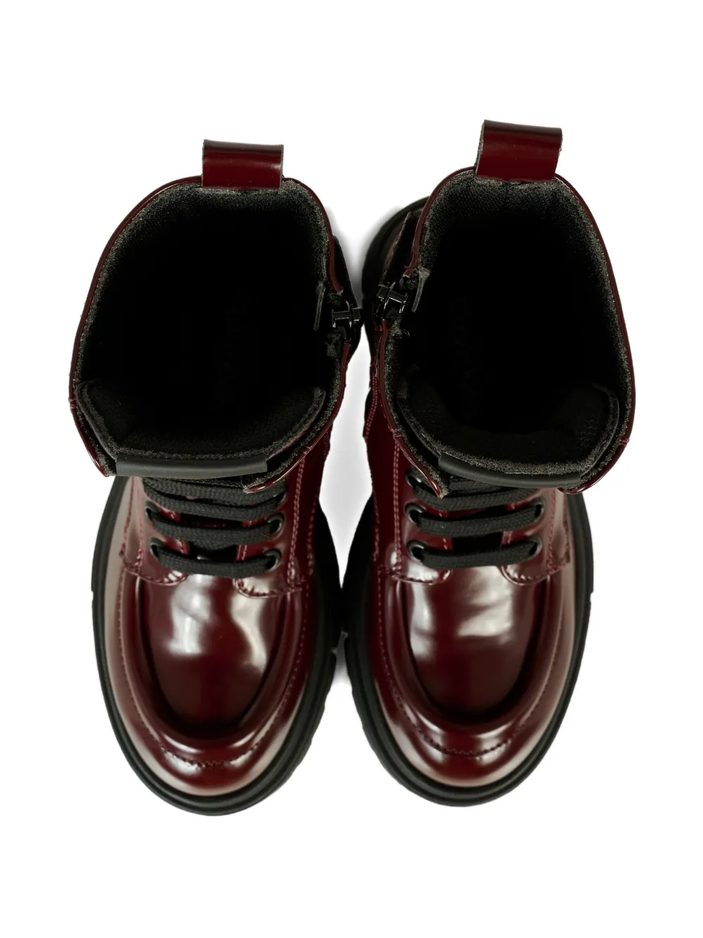 Бордовые лакированные туфли на платформе со шнуровкой и круглым носком, с логотипом
