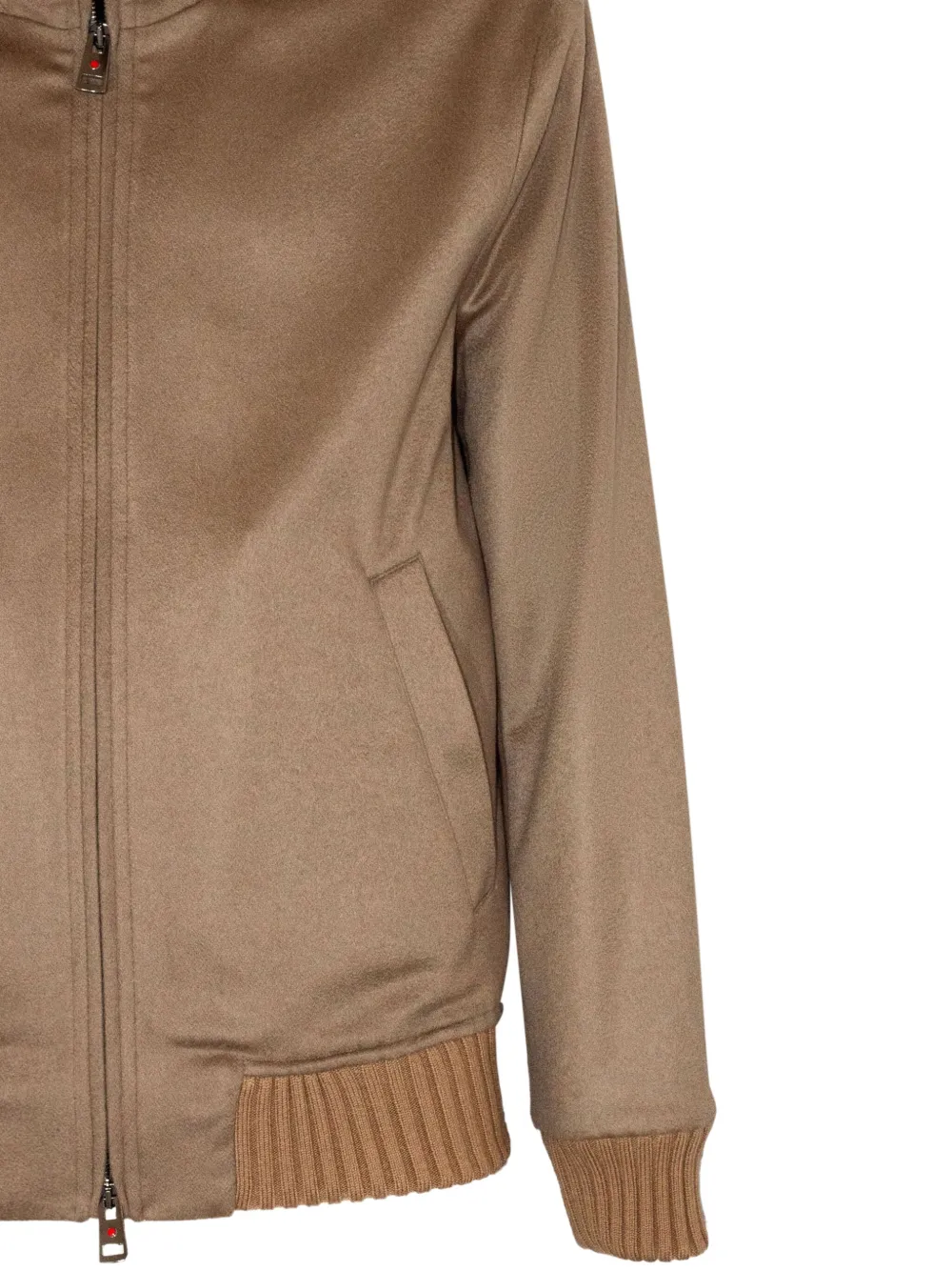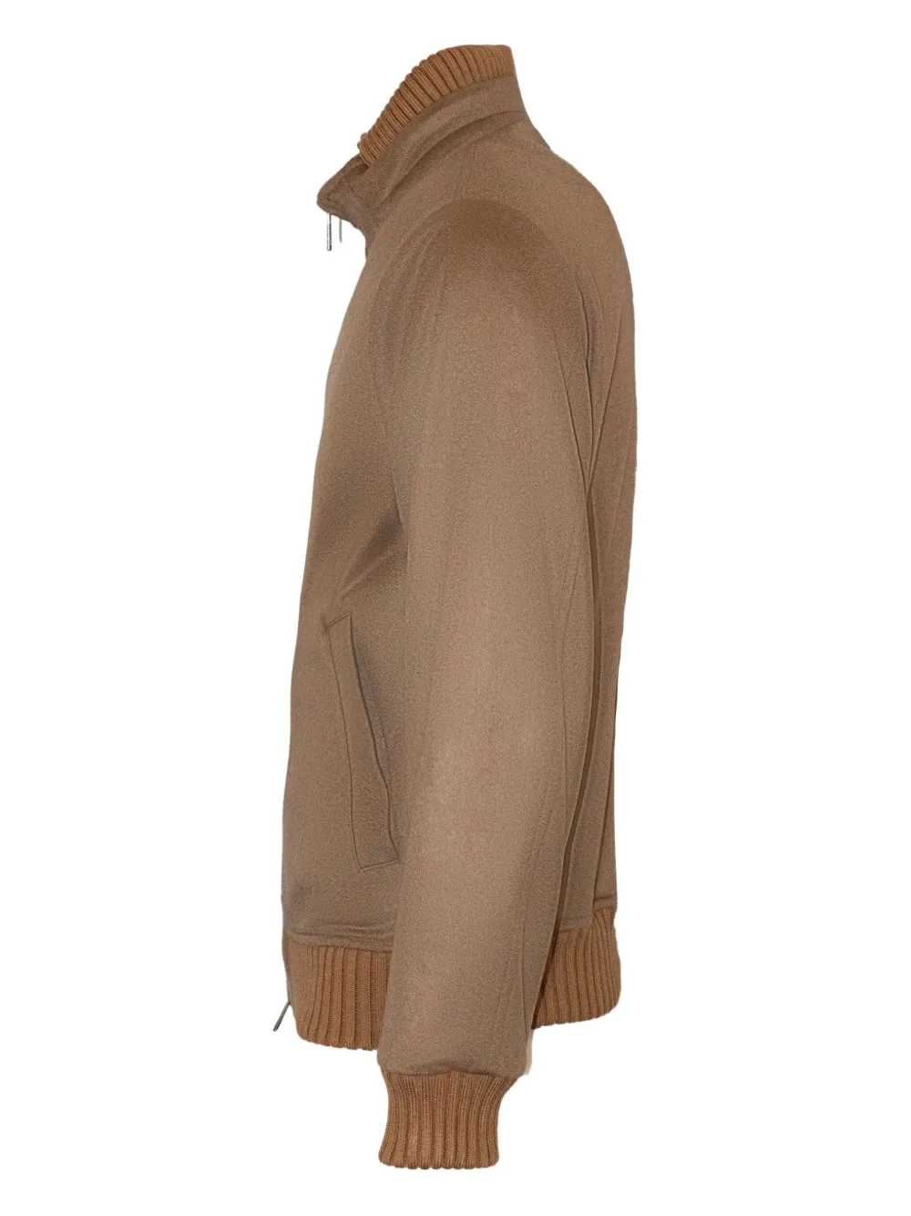 Бежевая кашемировая ткань, застежка-молния, ребристые манжеты, ребристый подол, боковые карманы