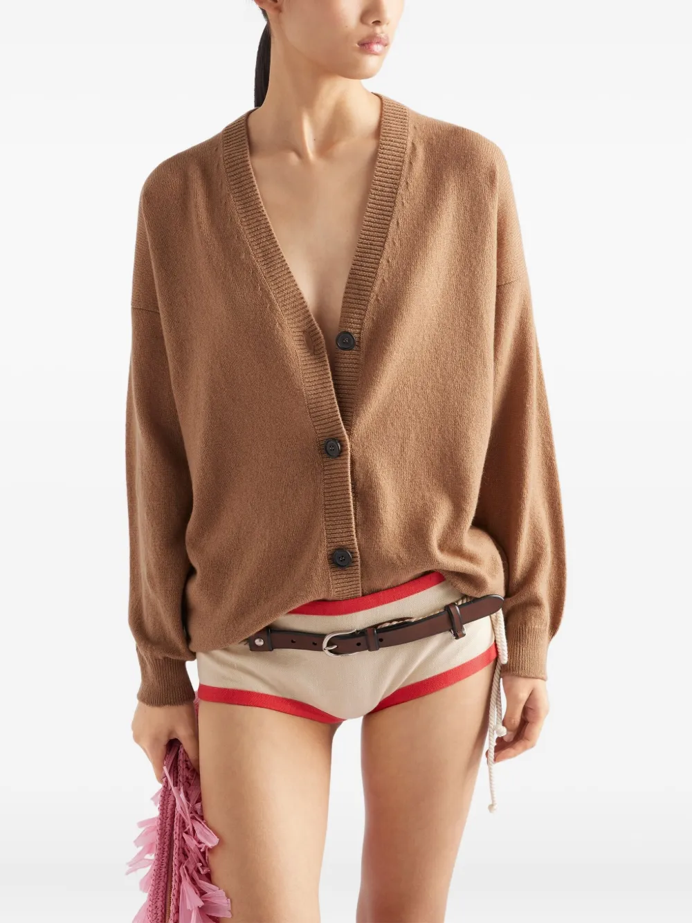 Кашемировый кардиган в рубчик Prada, коричневый