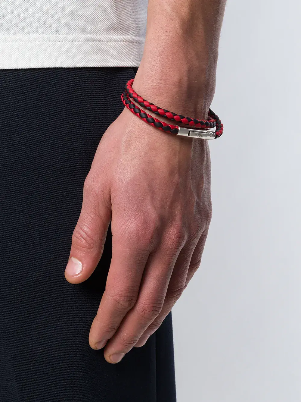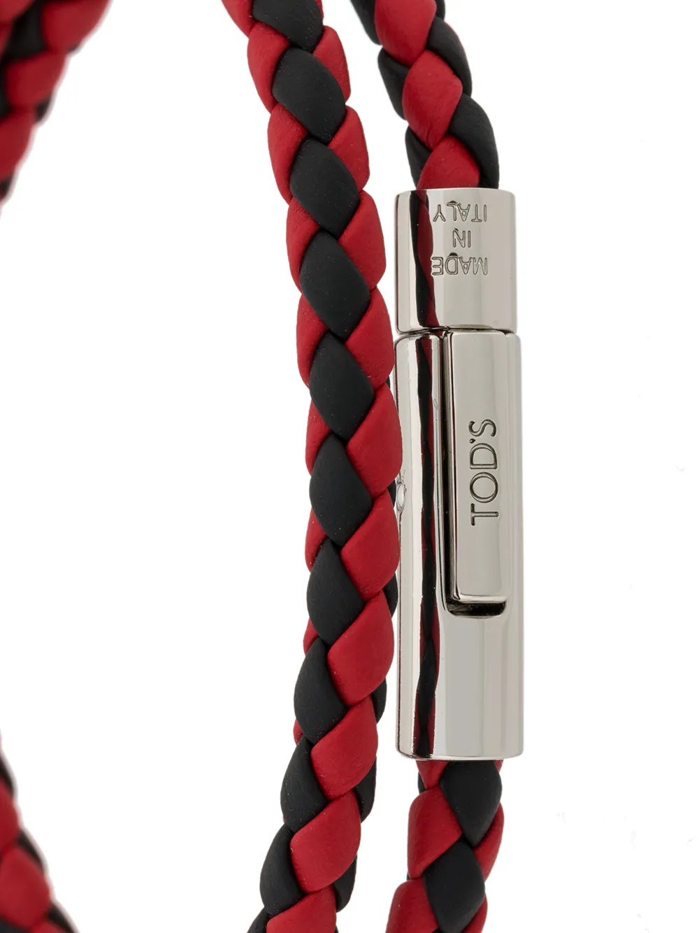 Плетеный браслет от Tod's (Тодс). Серебристая фурнитура и гравировка логотипа.
