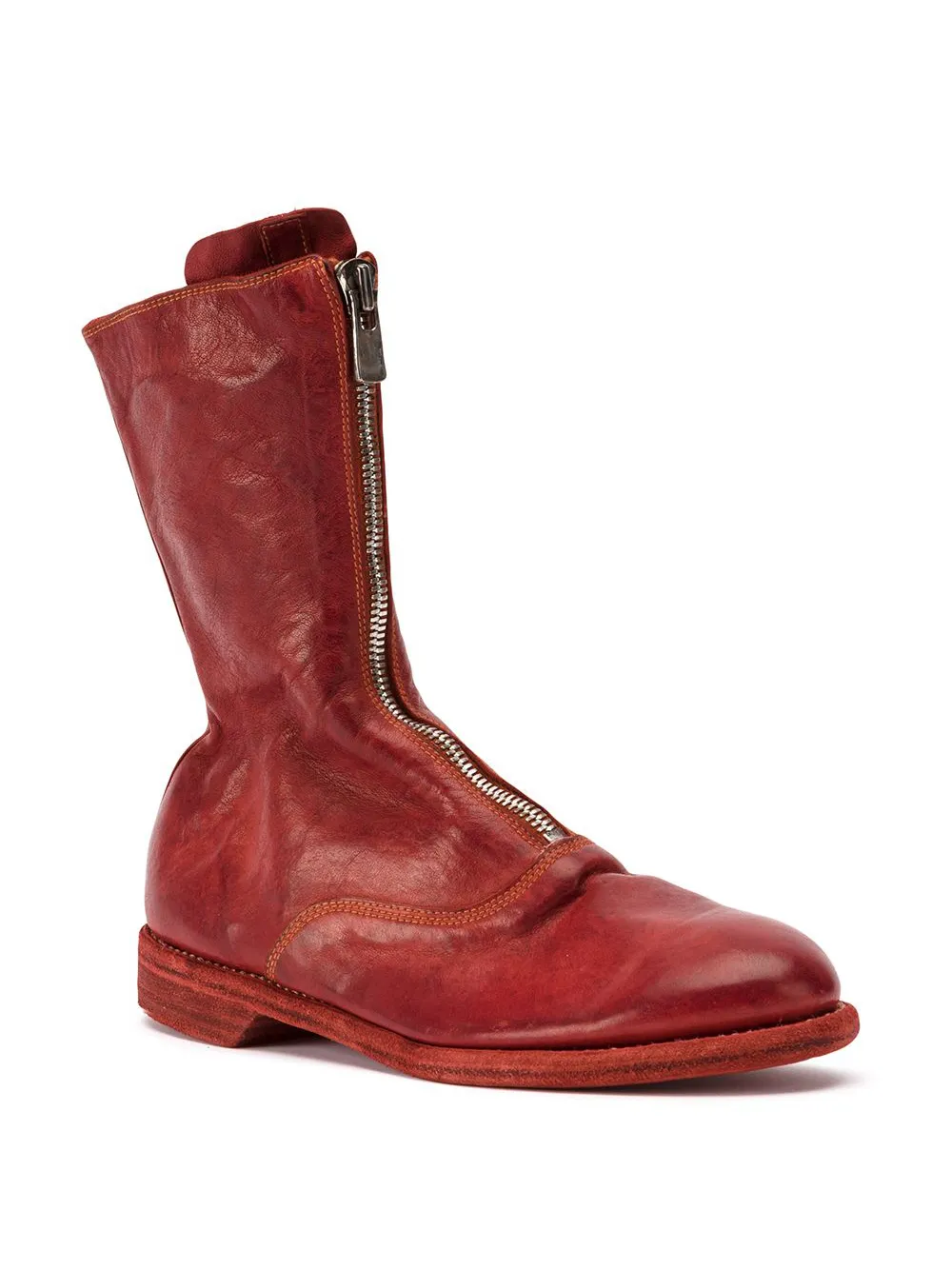 Ботинки на молнии от Guidi. Закругленный носок, плоская подошва, длина по щиколотку и застежка на молнии спереди. Цвет: красный.