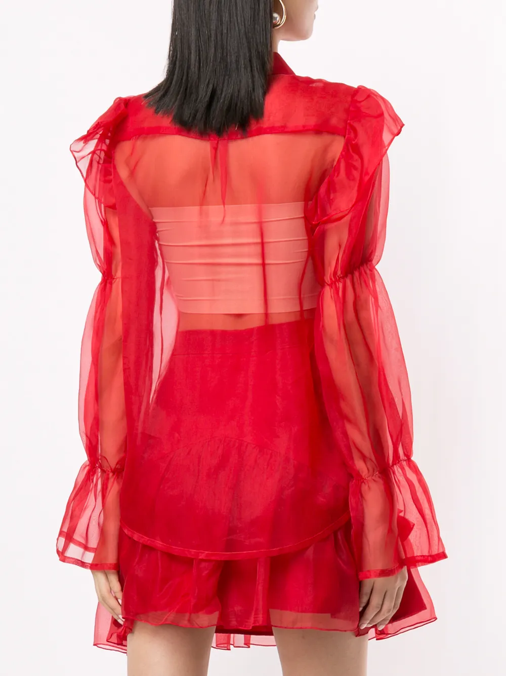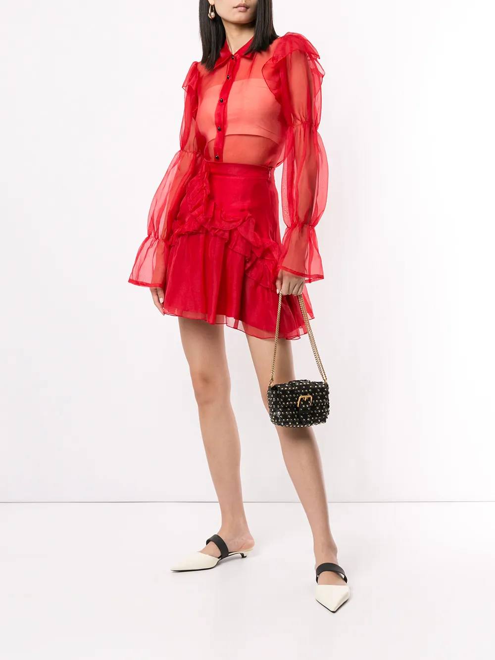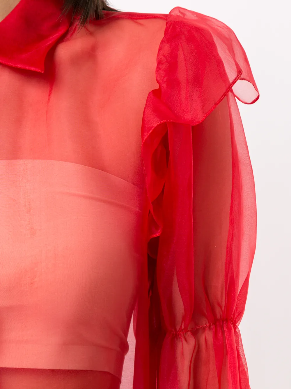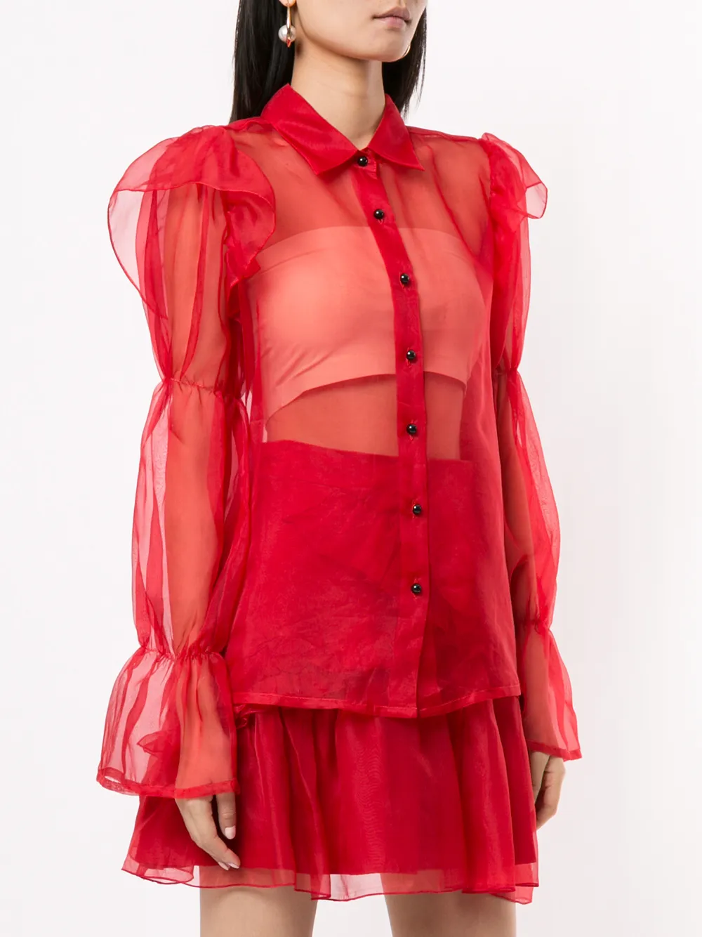 Блузка Souffle от McGraw (МакГроу). Отделка с гофром, классический воротник, застежка на пуговицах спереди, длинные рукава и прямой подол. Цвет: красный.
