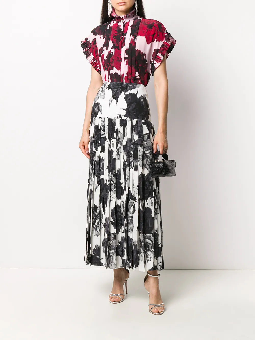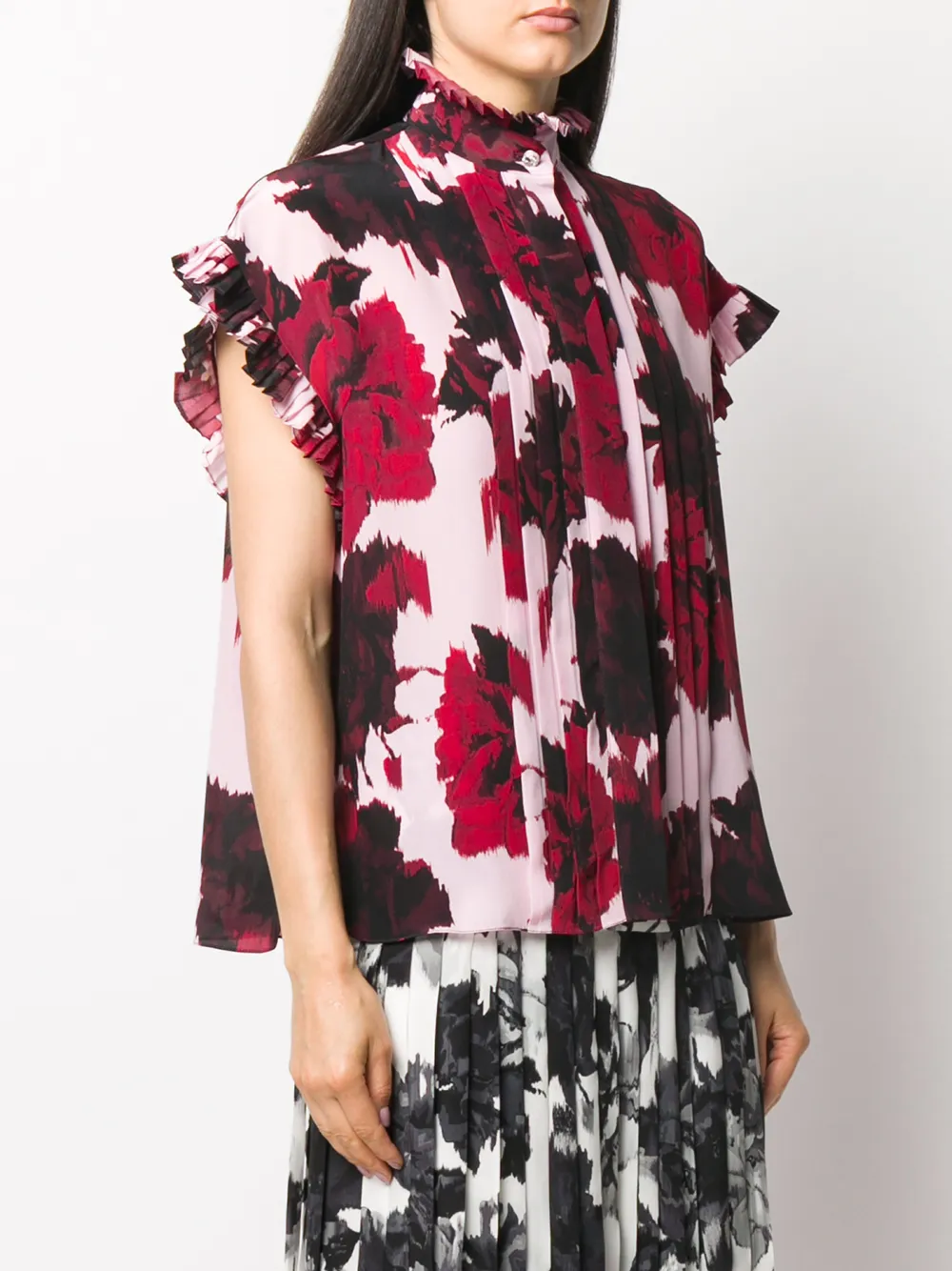 Рубашка с оборками и цветочным принтом Alexandre Vauthier, красный