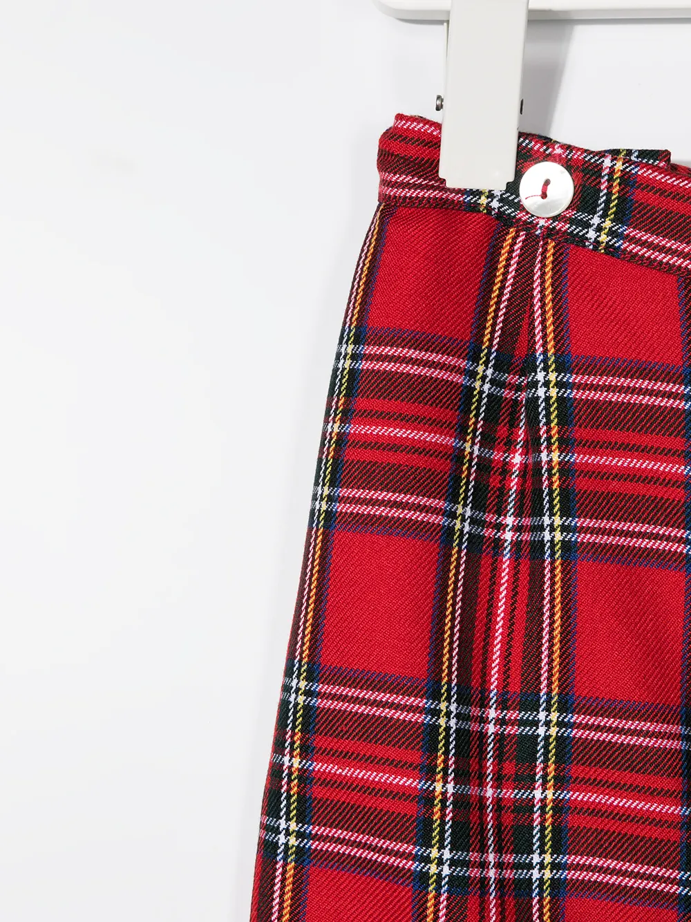 Клетчатый узор, длина по колено и эластичный пояс. Цвет: красный.