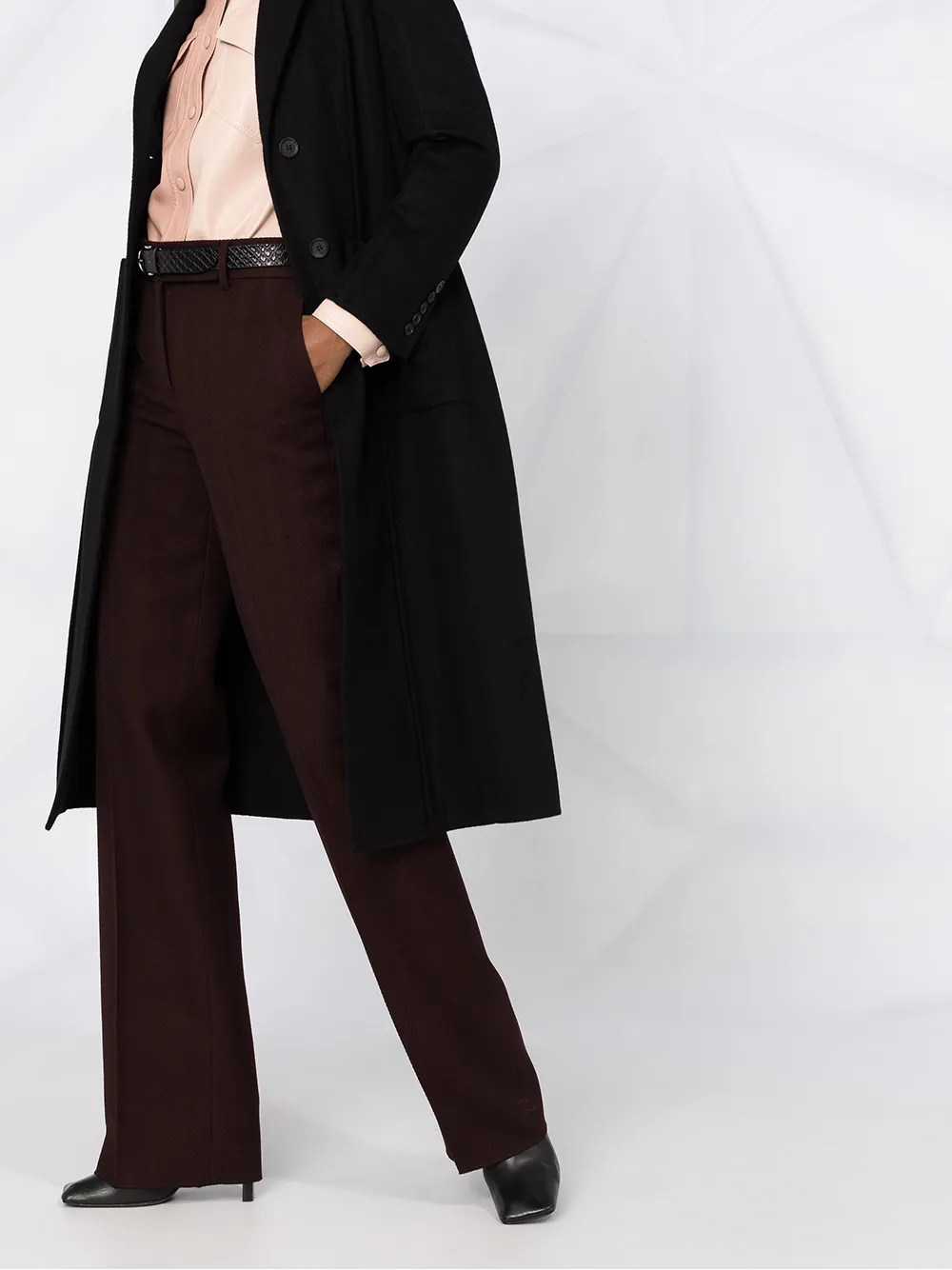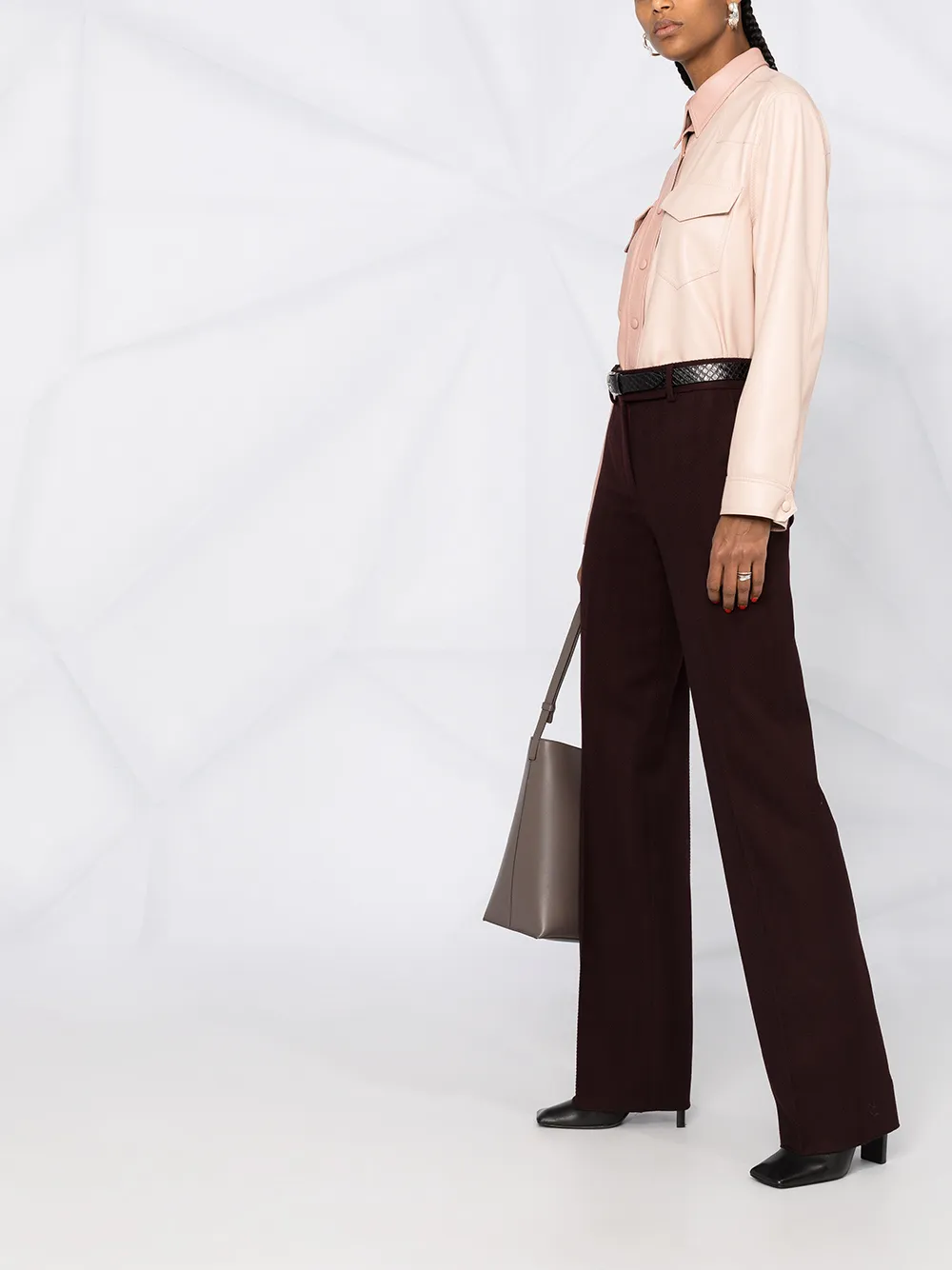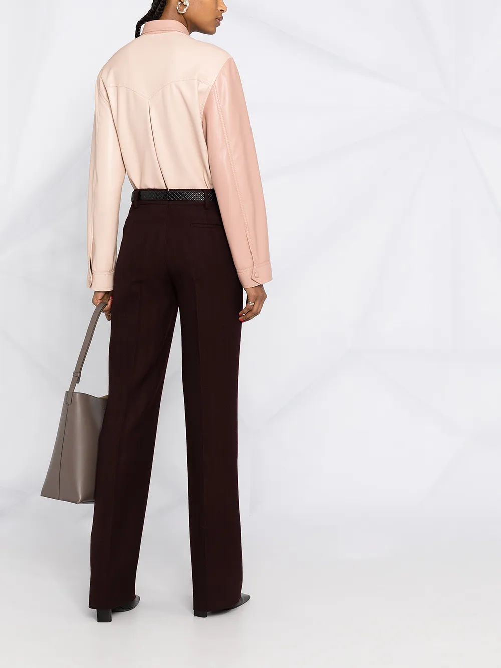 Застежка на пуговицах спереди, петли для ремня и два кармана с листочкой сзади. Цвет: красный.