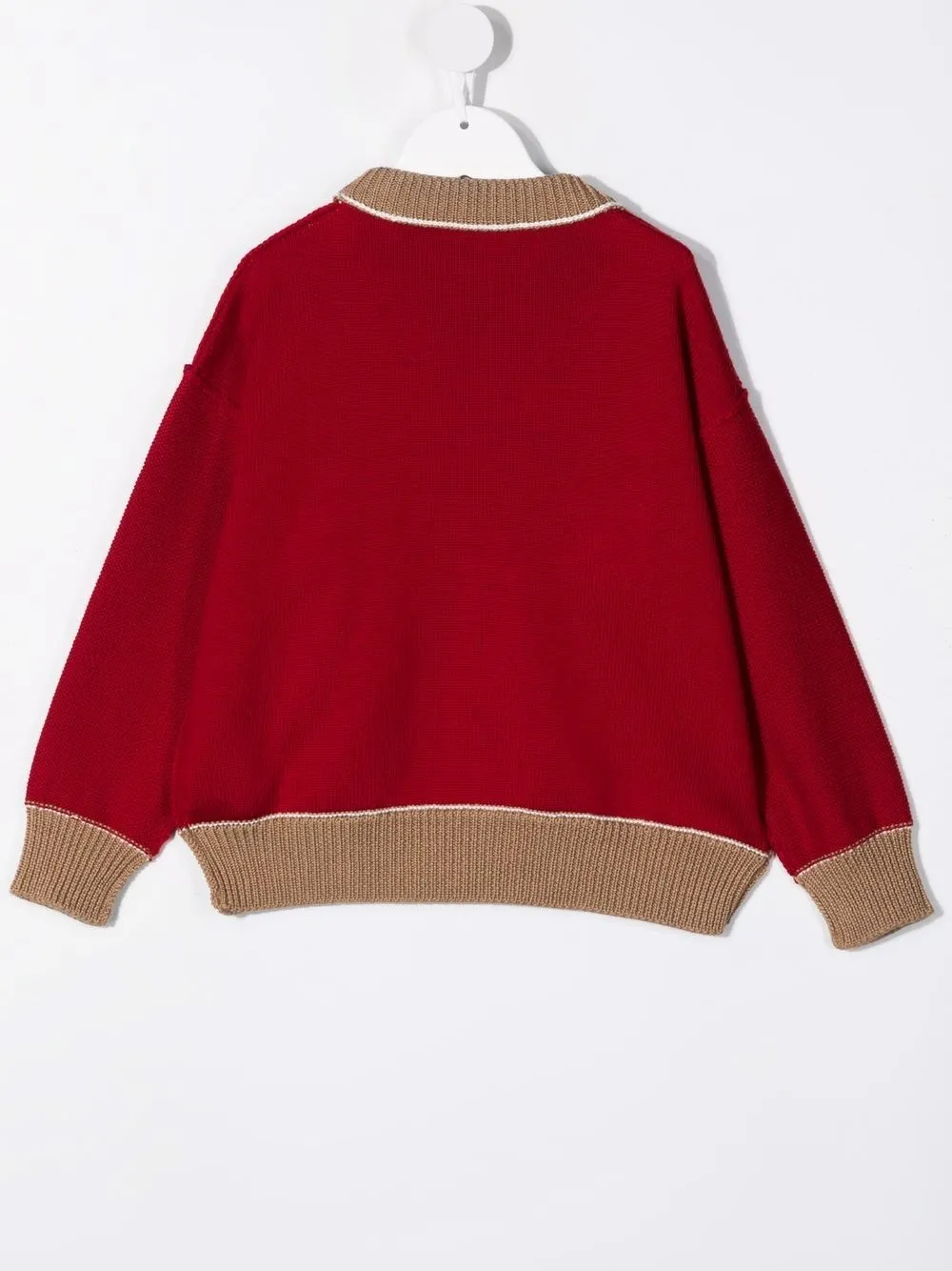 Красный шерсть круглый вырез длинные рукава контрастные вставки принт спереди