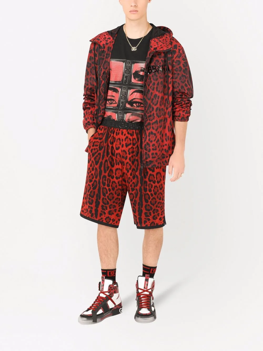 Куртка с капюшоном и леопардовым принтом DOLCE & GABBANA, красный