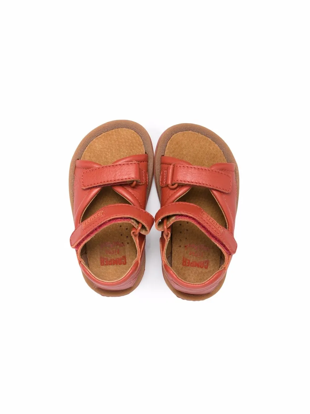 Подробнее о товаре: Нашивка с логотипом спереди, открытый носок, застежка на липучке спереди, стелька с логотипом и плоская резиновая подошва. Цвет: красный. Кожа в составе этого товара сделана на фабрике, сертифицированной организациями Leather Working Group (LWG) или ICEC. Это гарантирует, что производитель минимизировал негативное влияние материала на окружающую среду. Узнать больше о том, какие товары получают отметку «Ответственный выбор», можно из материала «Как мы оцениваем экологичность и этичность».