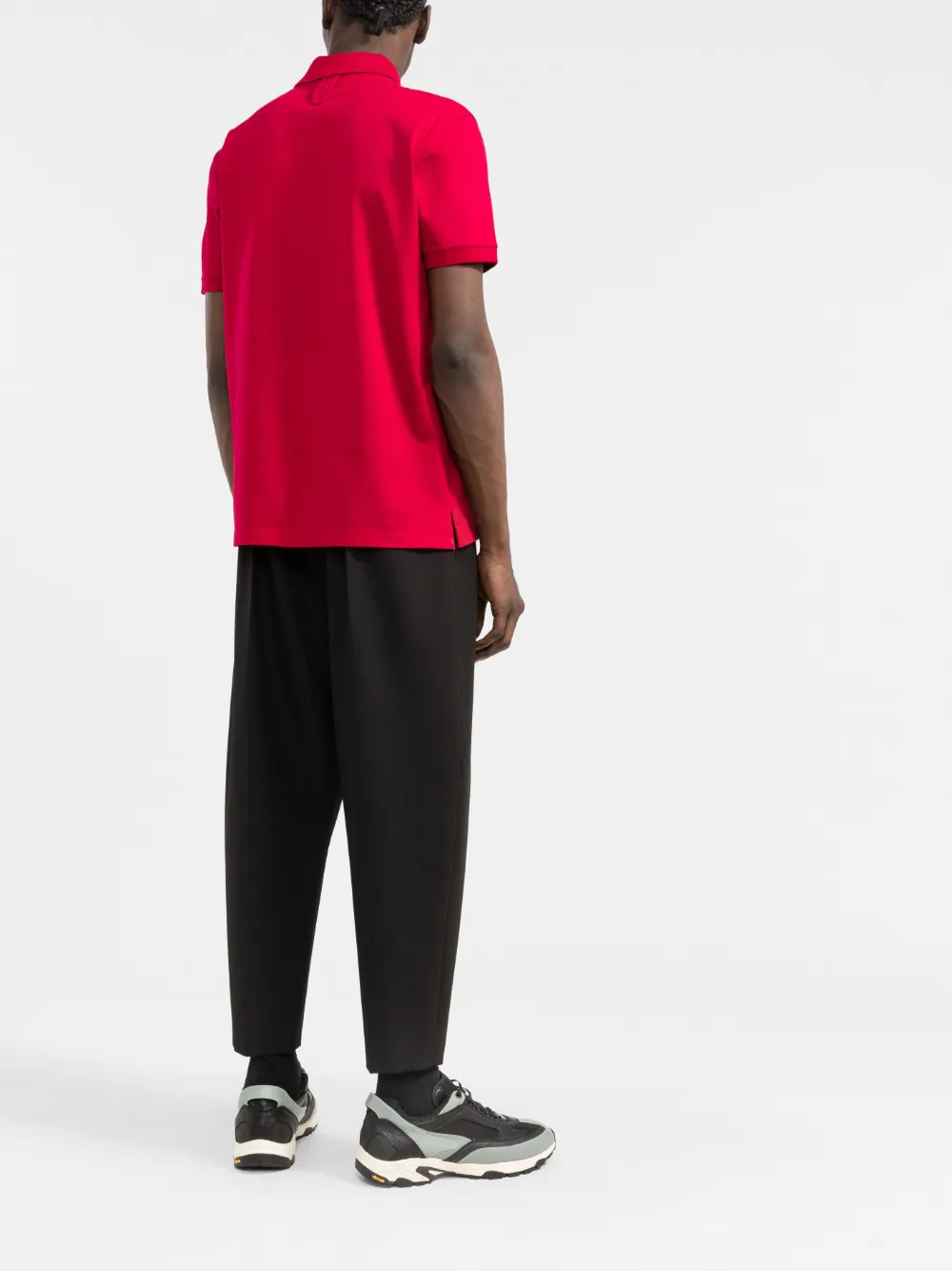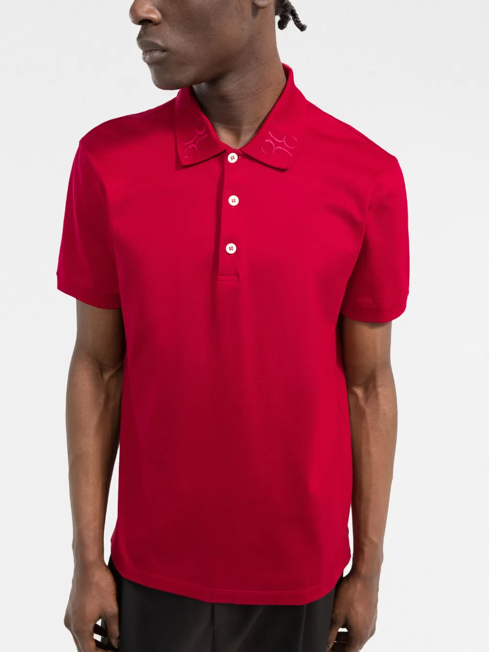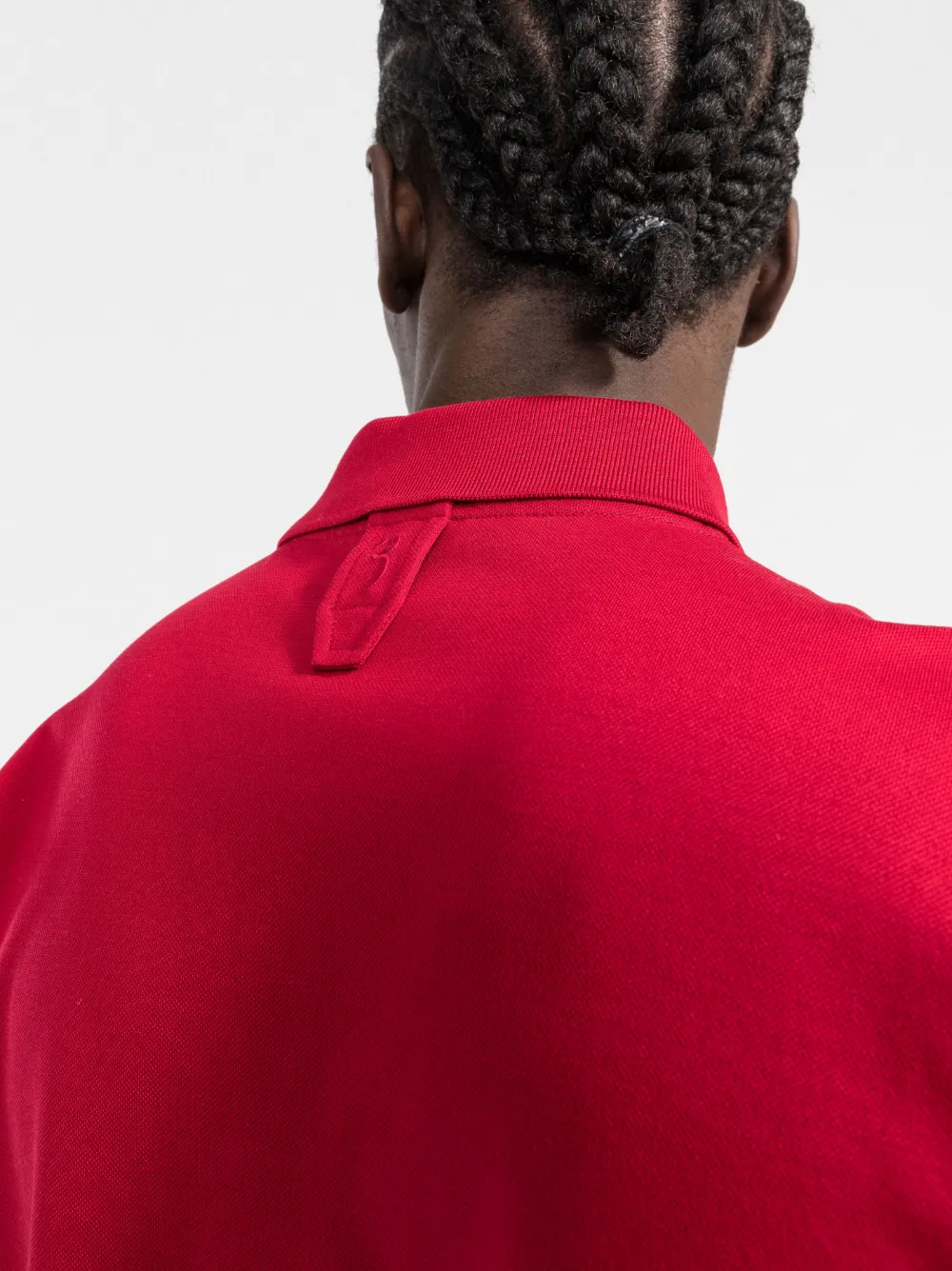 Воротник с вышитым логотипом, воротник поло, вышитый логотип сзади, планка на пуговицах спереди и короткие рукава. Цвет: красный.