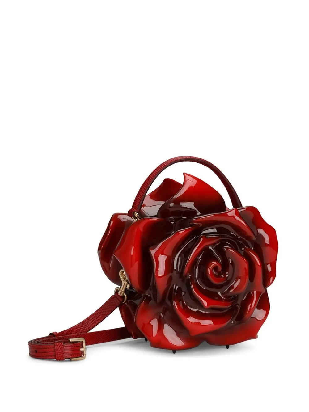 Насыщенно-красный, овечья кожа, золотистая фурнитура, металлический логотип внутри, верхняя ручка, съемный регулируемый ремень на плечо, потайная застежка на магните, основное отделение и металлические ножки.