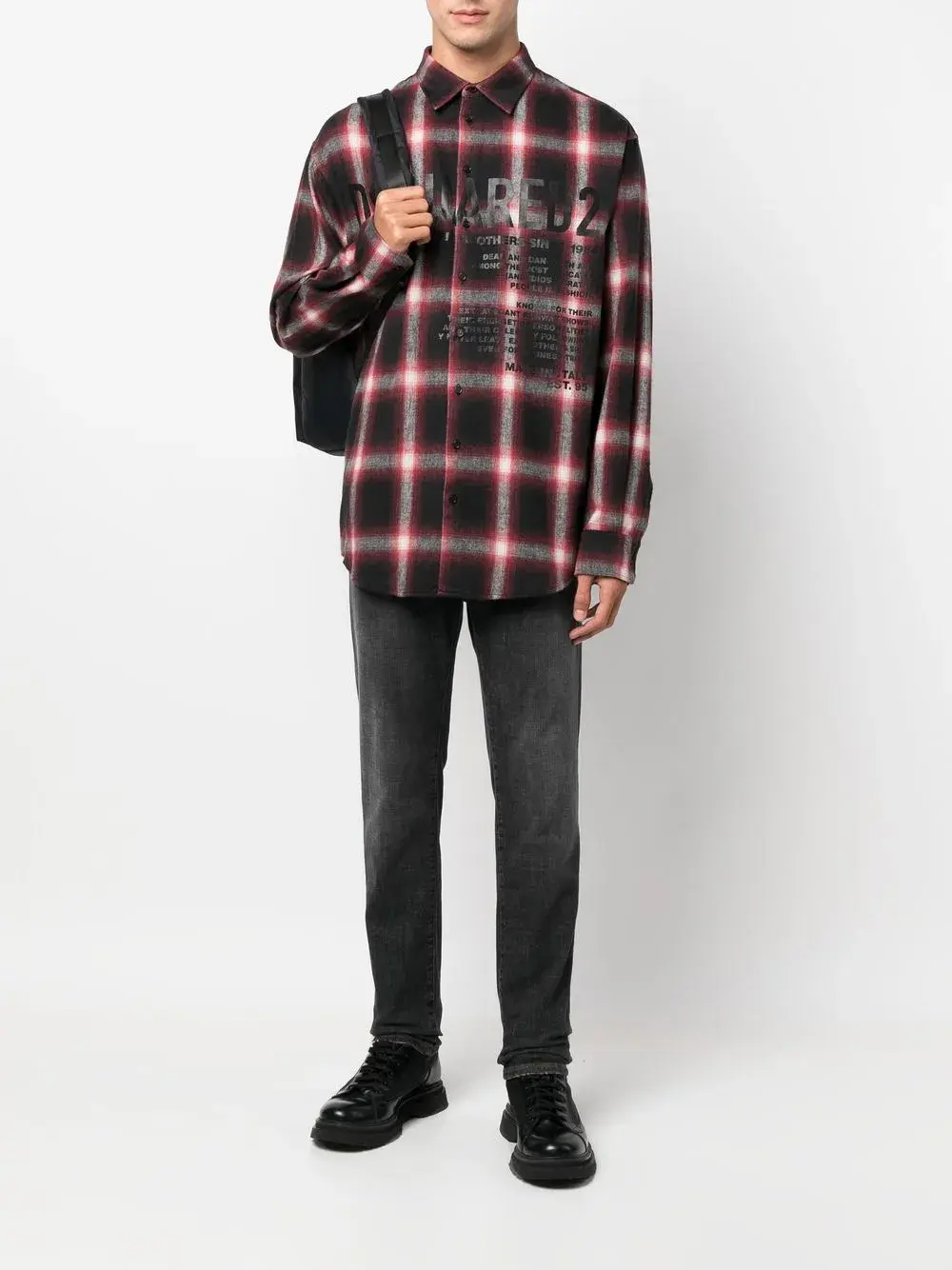 Рубашка в клетку с логотипом DSQUARED2, красный