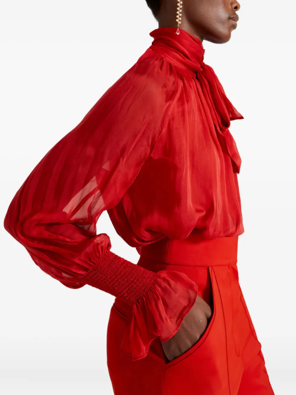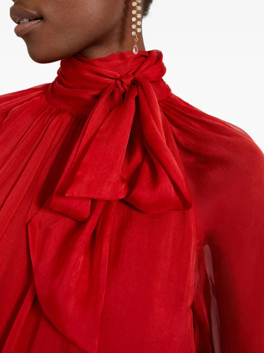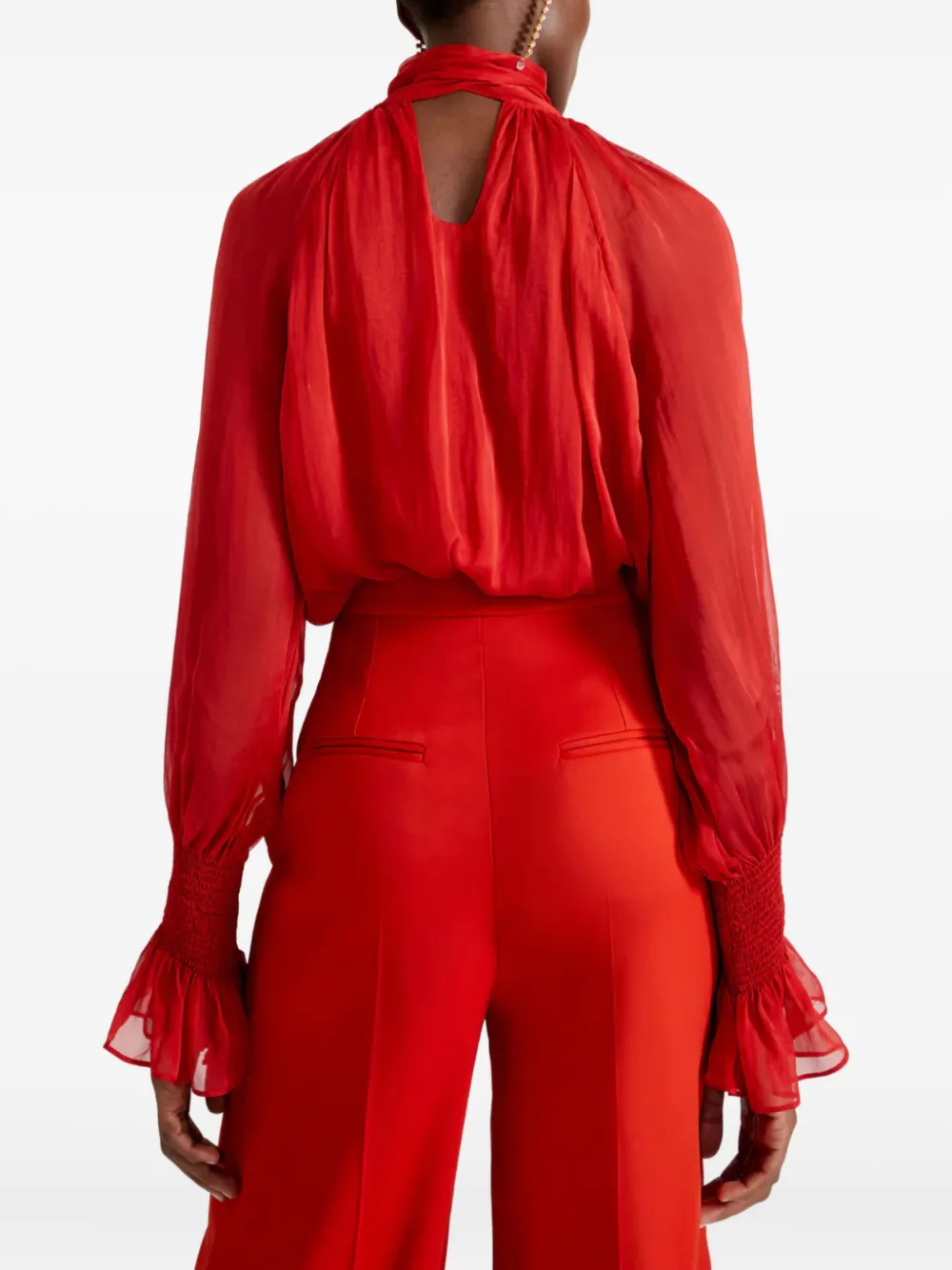 Галстук-бабочка цвета мака, длинные рукава, манжеты с оборками