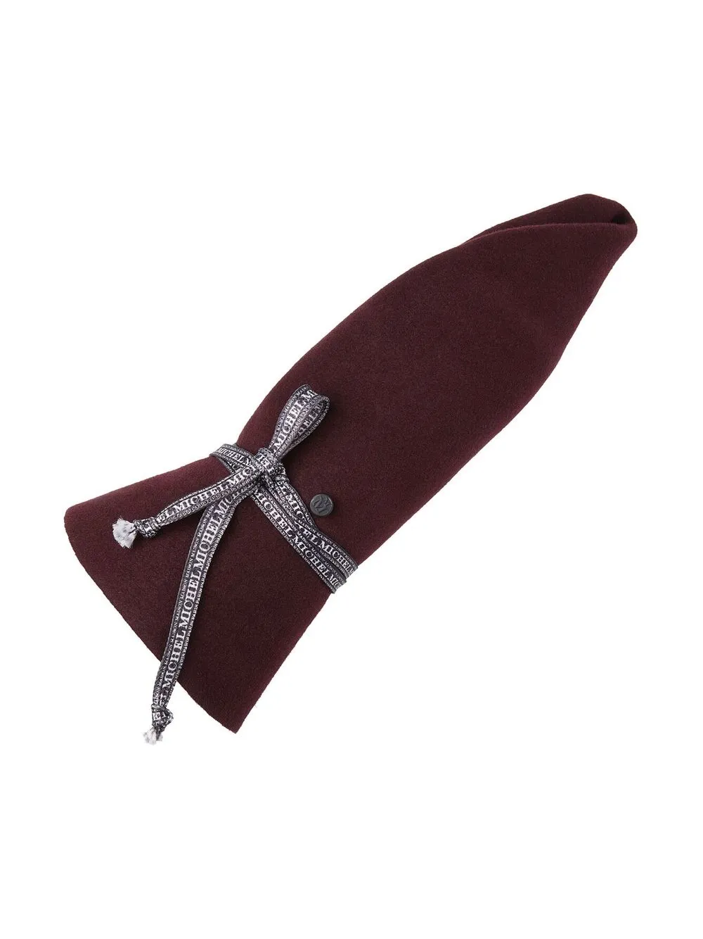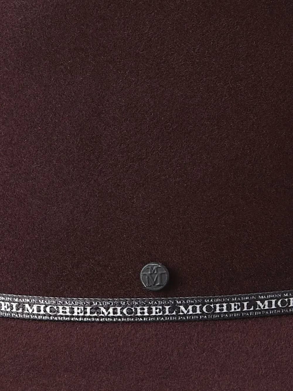 Бордовый, шерстяной фетр, отделка лентой с логотипом, логотип в тон, обратный свод и широкие поля.
