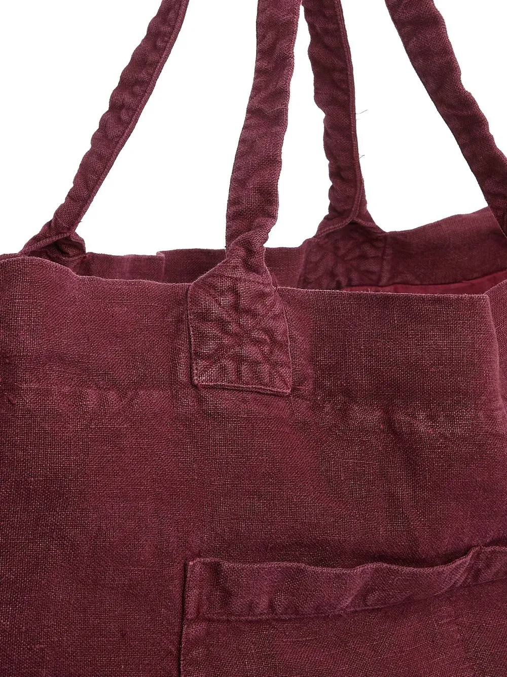 Винно-красный, лен, дизайн с открытым верхом, две закругленные ручки по бокам, основное отделение и прорезной карман спереди. Ответственный выбор: Этот товар как минимум на 50% состоит из материалов, которые признаны более безопасными для окружающей среды или сертифицированы независимыми организациями.
